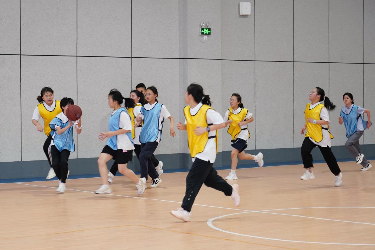 比赛场上,参赛队员们意气风发、气势非凡。挥洒的汗水,默契的配合,迅疾轻快的穿梭,迸射出汉实学子青春靓丽的姿态。即使摔倒也立马爬起,继续奋战,永不服输!即使与球框擦肩而过,也继续奔跑,追逐不止!青春与热血、热爱与激情在球场上空肆意飞扬,坚定的眼神与矫健的身姿书写了他们必胜的决心。场下,教练谋策谋略,时而大声疾呼,时而耐心指点;啦啦队情绪激昂,助威声此起彼伏,将赛场气氛屡屡推向高潮!