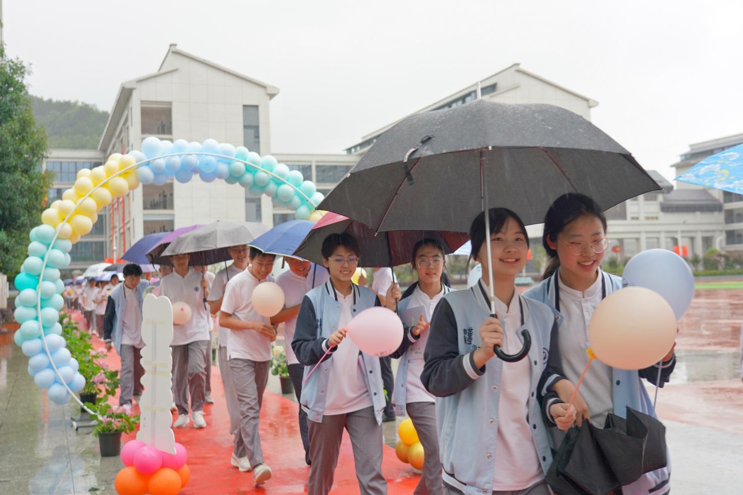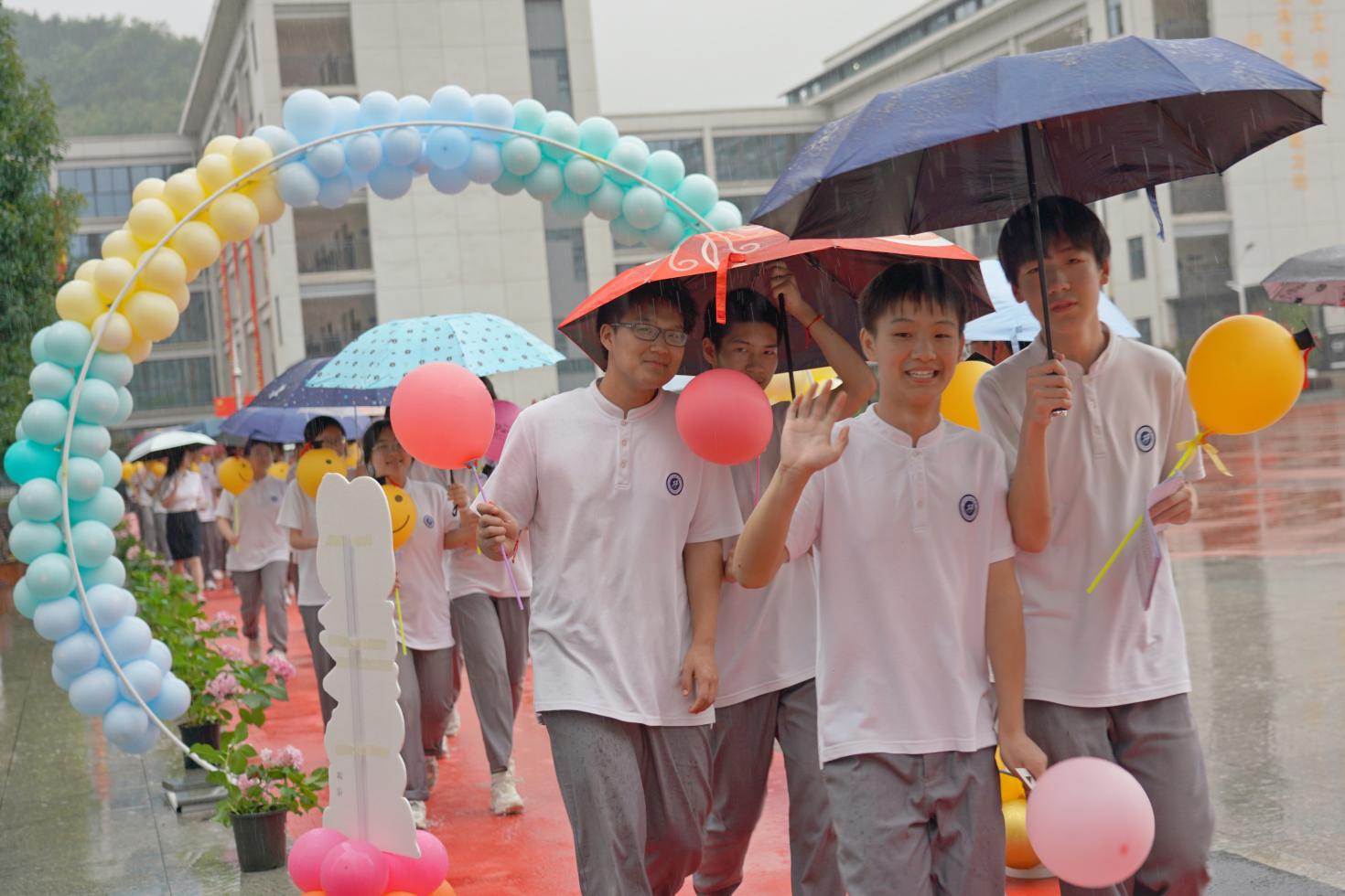 濛濛细雨也掩不住九年级学子的喜悦