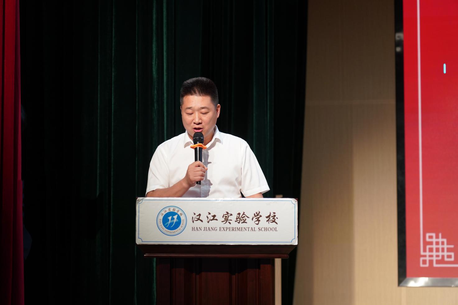 又是一年繁花盛开季,又是一年鲲鹏展翅时。纵有千般不舍离别意,仍期破茧成蝶起征程。2023年6月17日,十堰市汉江实验学校隆重举行“忆如初见·梦想启航”——2023届九年级毕业典礼。汉江实验学校校长朱仕竹,副校长陈磊、王宇、张旭东,质量总监王国聪,九年级全体师生及家长代表,七、八年级学生代表欢聚一堂,共同见证这一重要时刻。典礼由初中部老师齐建平主持。