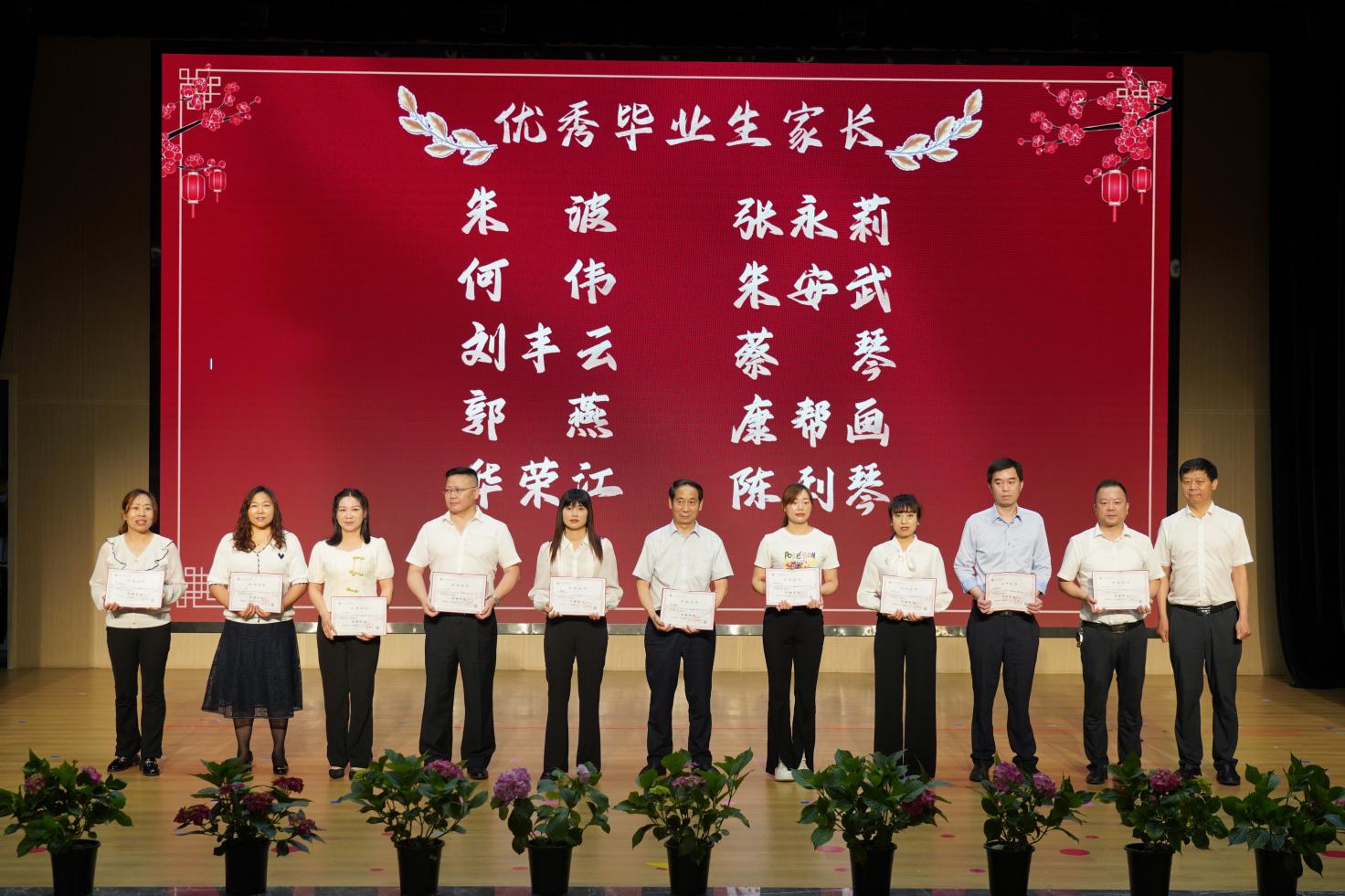 副校长陈磊宣读优秀毕业生家长名单,校长朱仕竹向家长们颁发荣誉证书,以表彰杰出与卓越。