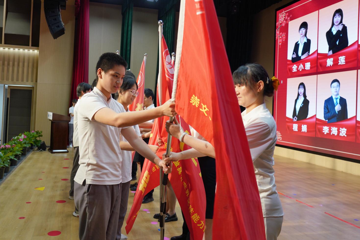 毕业之际,我们将旗帜重新交还到班主任手中,让汉实精神薪火相传。