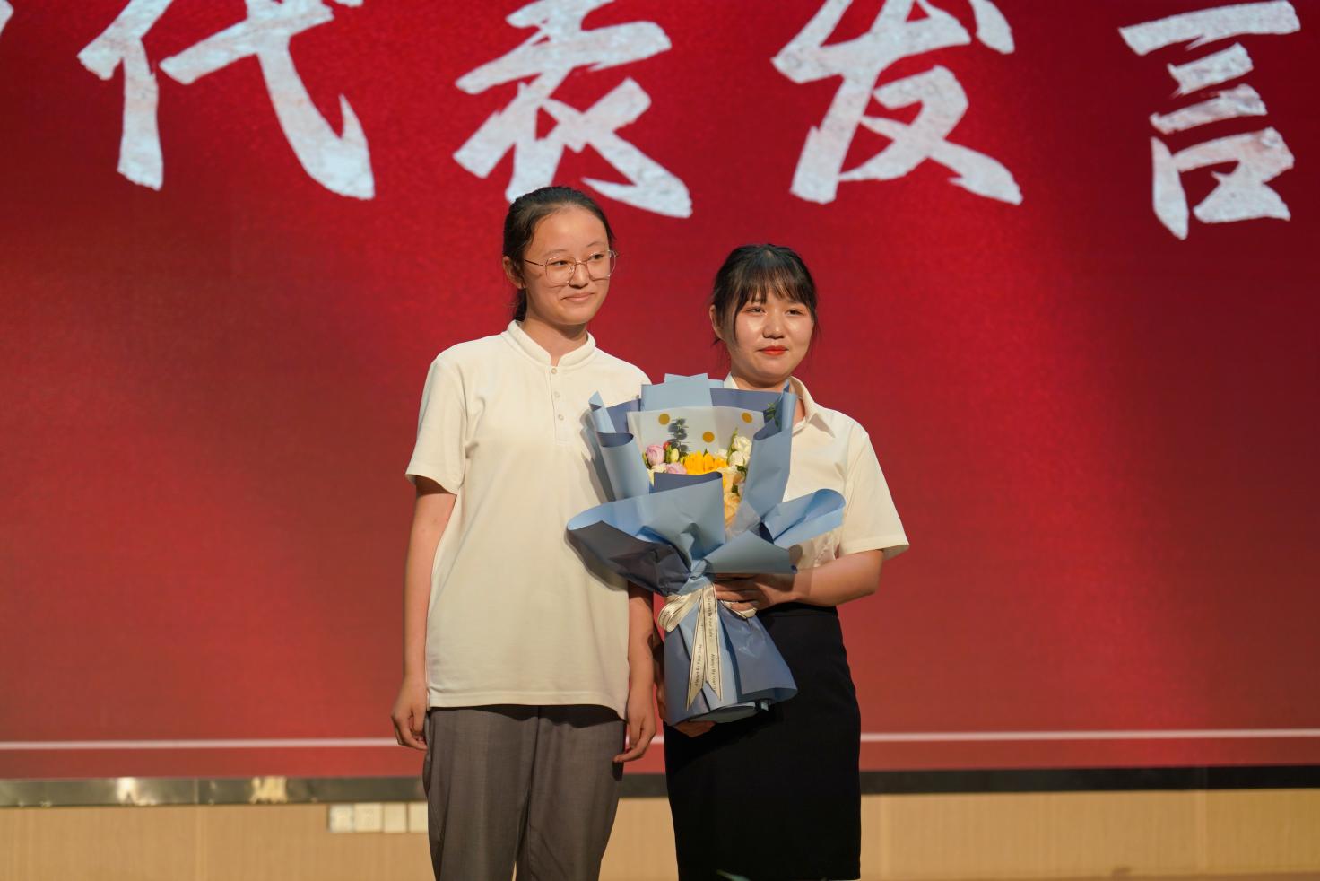 三年的勤学善教,成就一段师生情缘。山高水长,师恩难忘,毕业生代表献花,感谢师恩。