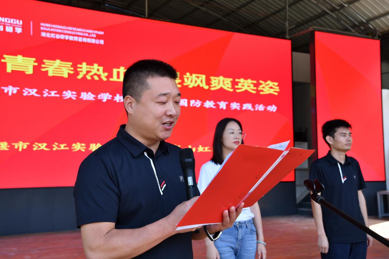 少年乘风正当时,国防教育的号角已经吹响,愿同学们以饱满的激情、积极的斗志、坚韧的毅力投入到此次国防教育中,认真参训、听从指挥、牢记要领、刻苦训练,用汗水见证成长,用努力成就自我!汉江实验学校副校长陈磊向同学们致以亲切的问候和美好的祝愿。