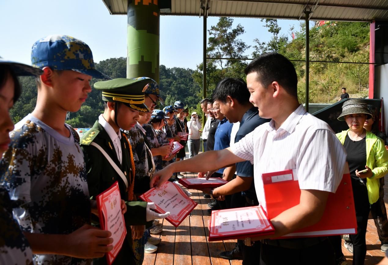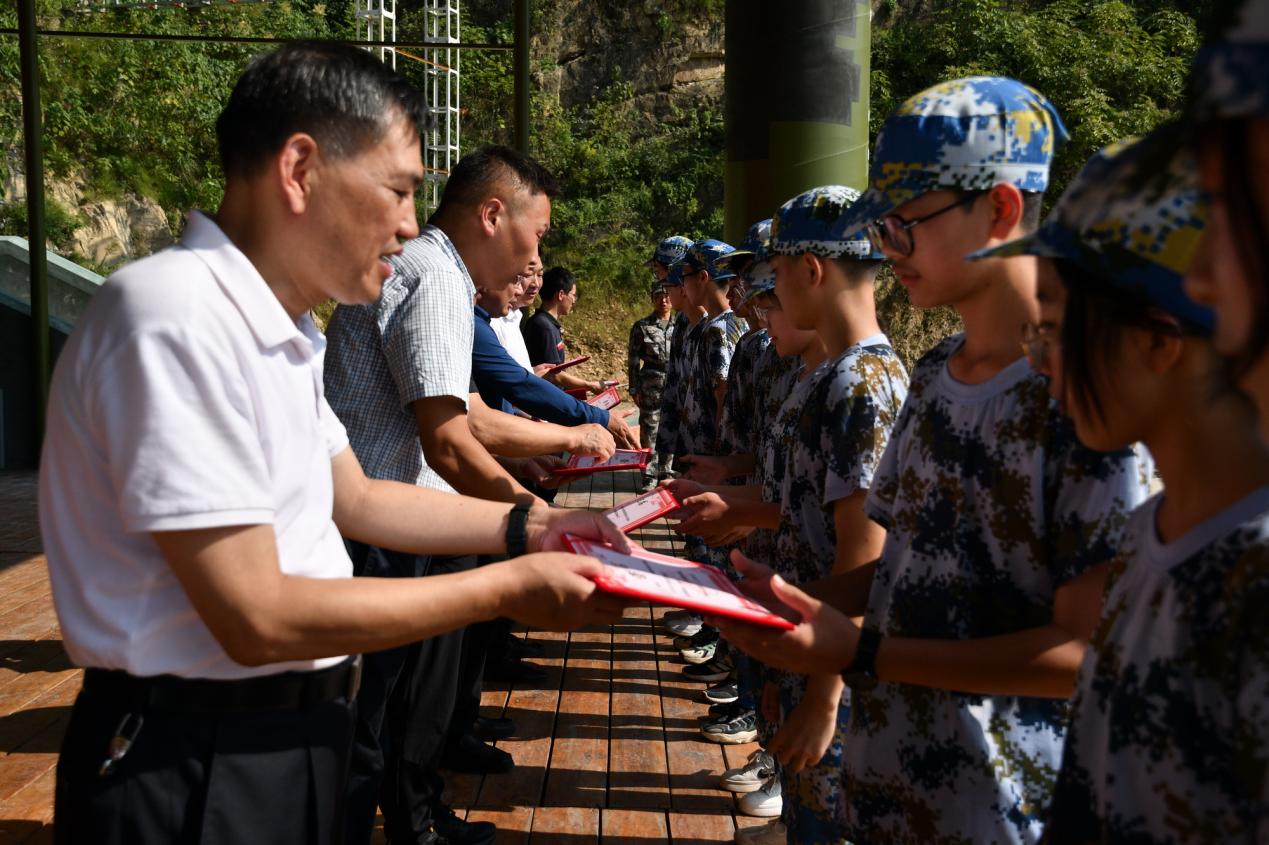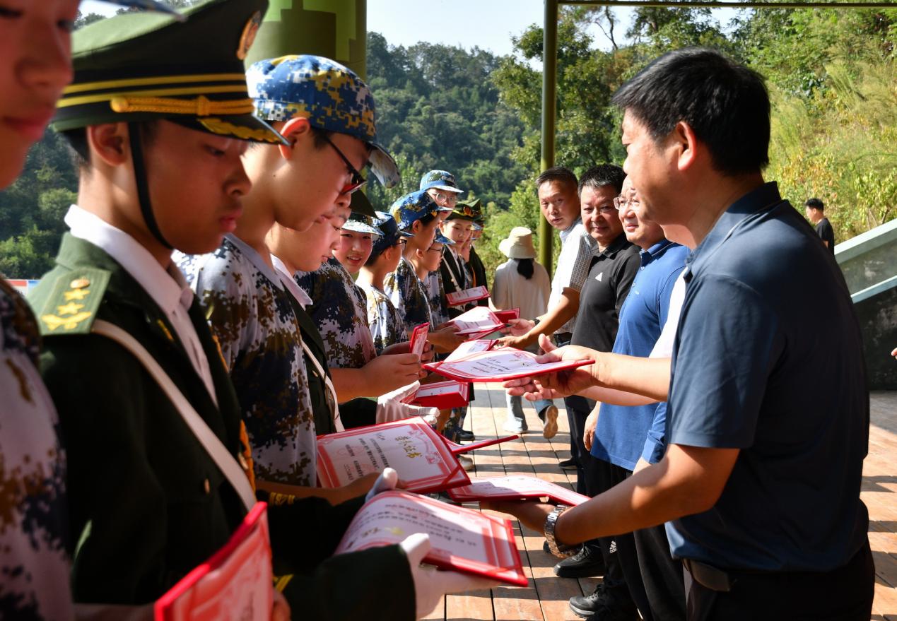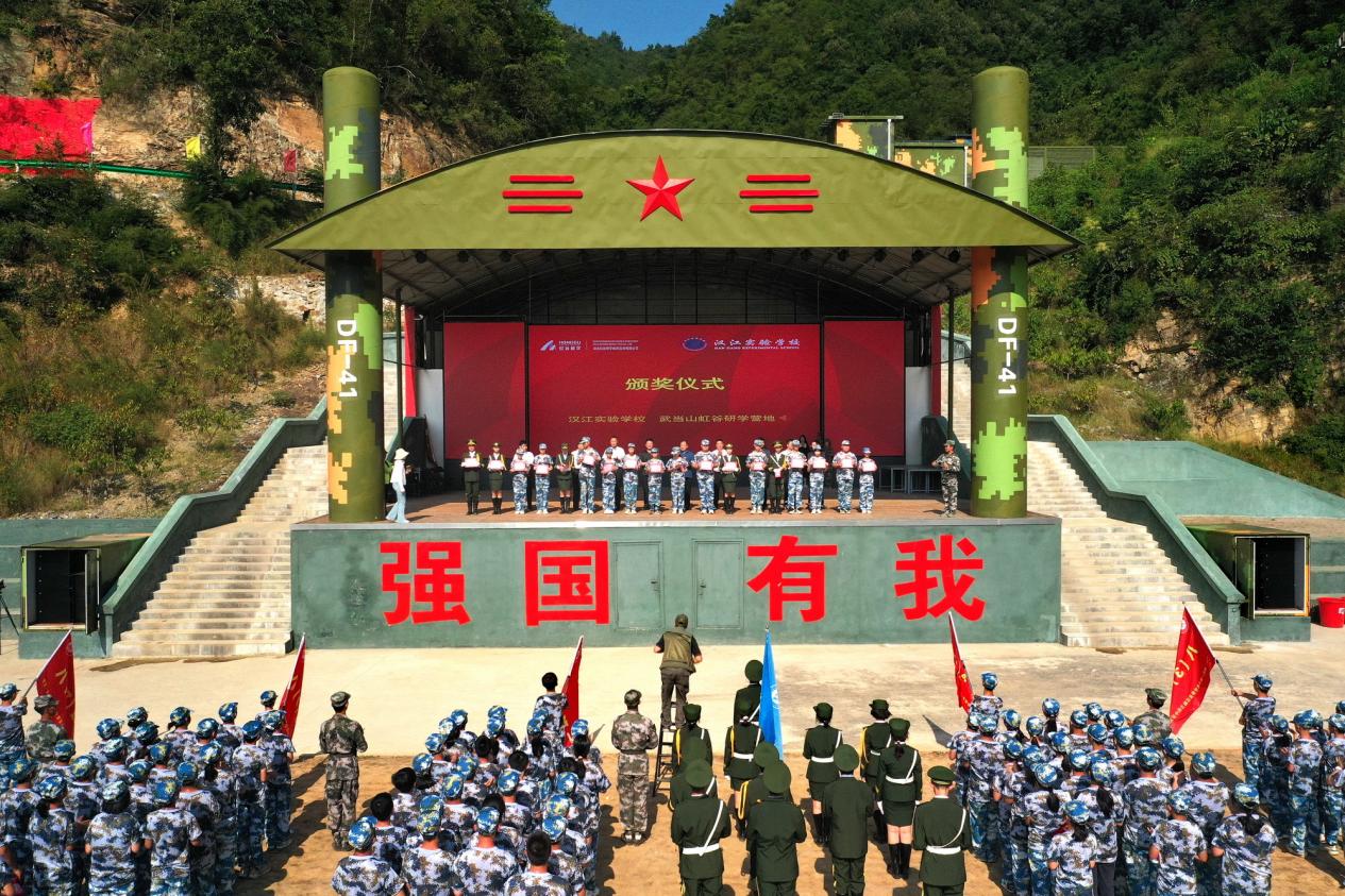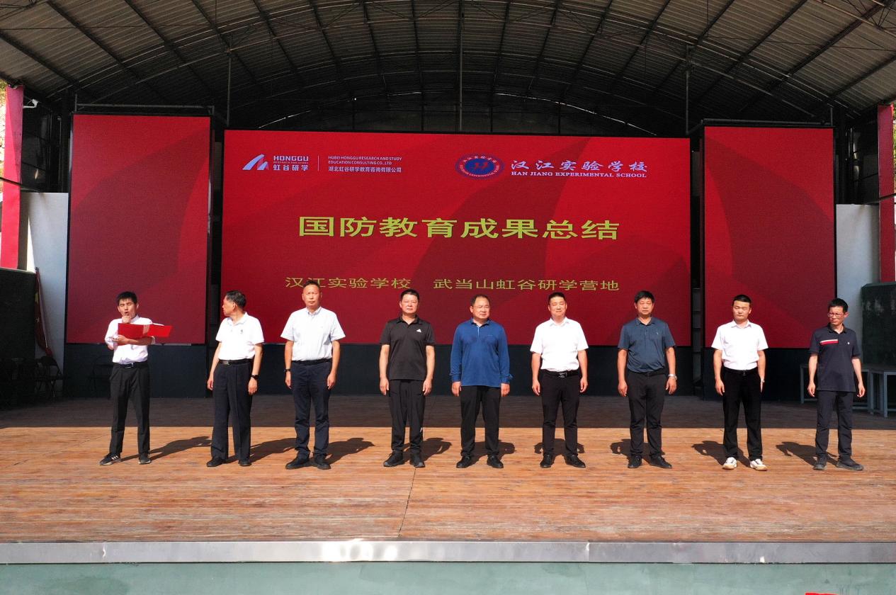 飒爽英姿五尺枪,曙光初照演兵场。中华儿女多奇志,不爱红装爱武装。历经三天的艰苦训练,汉实学子们在磨砺中悄然蜕变。9月14日下午,隆重举行结营仪式。武当山经济特区副主任张全书,乡村振兴驻村工作队成员、武当山旅游股份有限公司副总经理陈光月,武当山虹谷研学营地董事长、军号国防教育中心创始人张子顺,武当山虹谷研学营地总经理邵志义,汉江实验学校总校副校长、学生发展研究院主任陈磊,汉江实验学校初中部校长杨志等领导出席,学校团委书记周兵主持仪式。