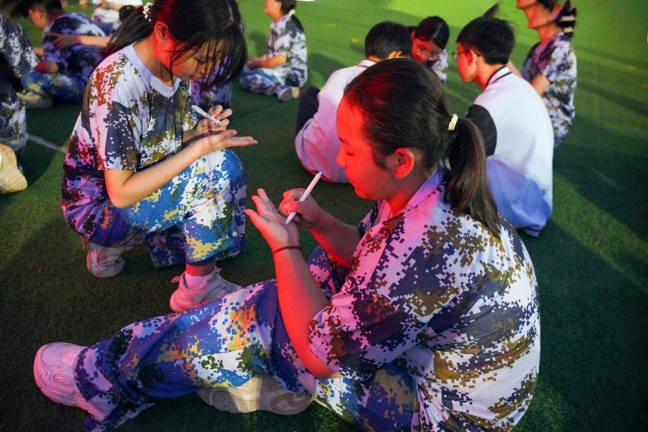 9月13日晚,营地训练场上,开出了火树银花,孩子们,老师们,教官们齐聚一堂。精彩的舞蹈、欢快的歌曲、灿烂的笑脸,让欢声笑语传遍了篝火晚会每一个角落。