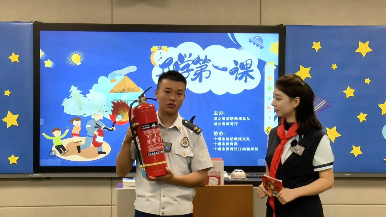 9月15日上午,由湖北省消防救援总队、省教育厅联合主办,十堰市消防救援支队、市教育局承办的秋季消防安全“开学第一课”以线下实地授课+线上直播的方式在十堰市张湾汉江实验学校开课。