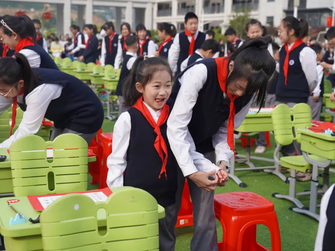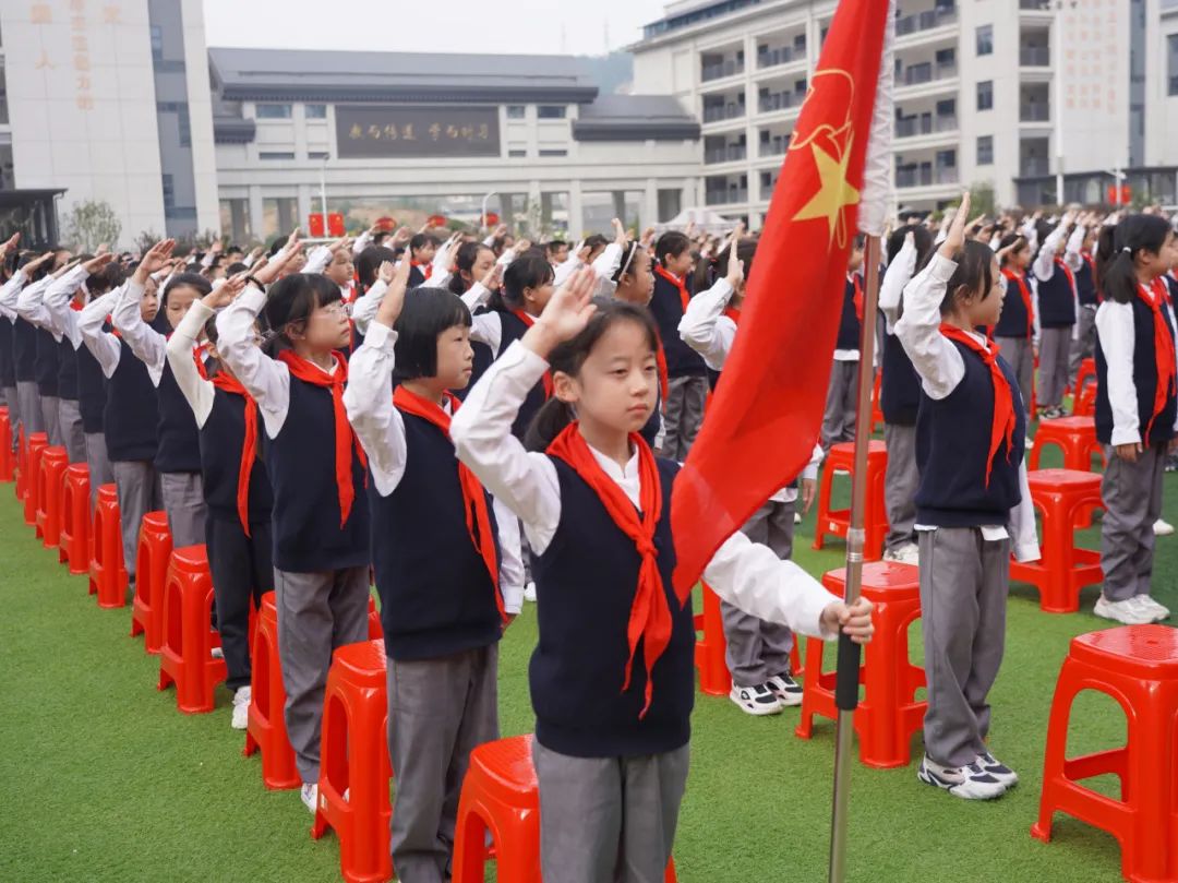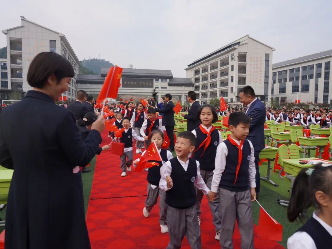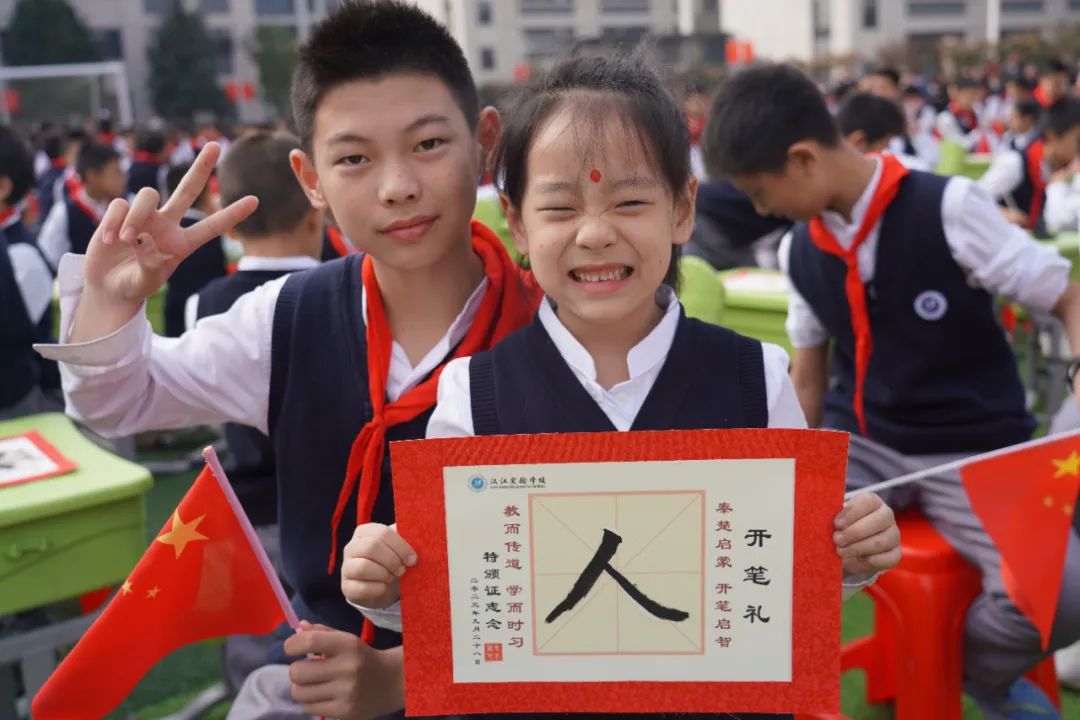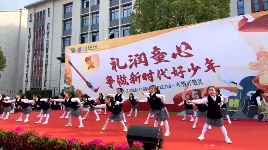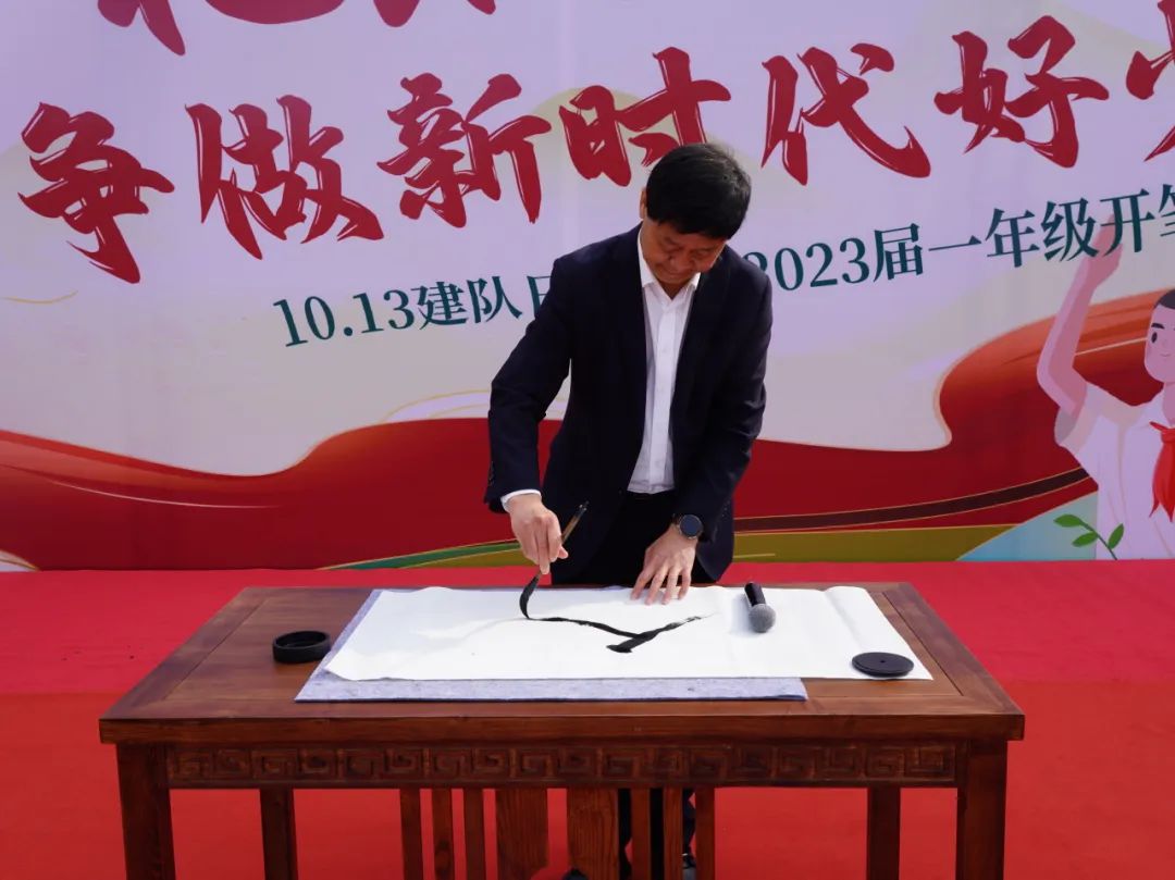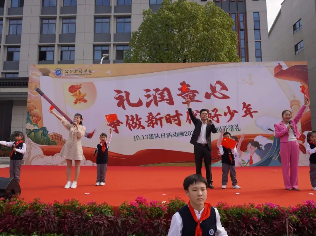 10月13日,金秋佳日,汉江实验学校隆重举行少先队建队日暨2023级一年级“开笔礼”活动。本次活动以纪念少先队建队74周年为契机融合一年级“开笔礼”,旨为教育引导广大少先队员弘扬中国传统文化,礼润童心,争做新时代好少年。汉江实验学校总校长朱仕竹、小学部校长吴霞等校领导、小学部全体师生及一年级学生家长共计约2000人出席活动,活动全程线上直播。