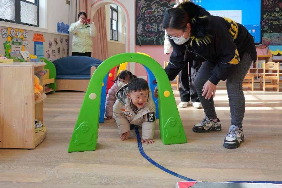 在有趣的闯关游戏环节,通过跨、跑、爬、钻、跳等锻炼孩子们感觉统合能力,增进了亲子间的互动与沟通。在游园环节中,老师们带领家长和孩子们参观并详细介绍了教室和功能室的设施,使孩子们能够更好地熟悉环境。