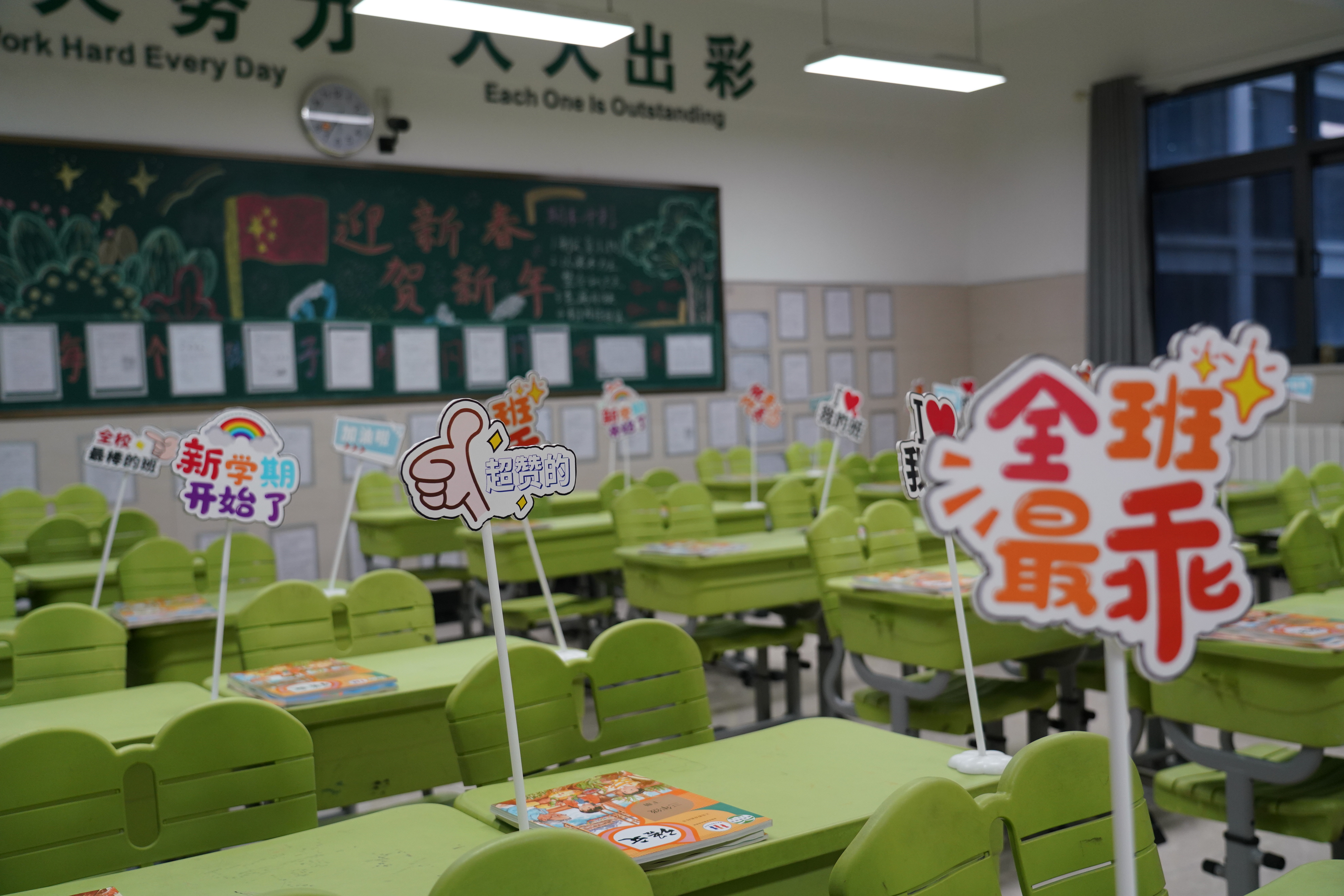 学生返校前,班主任和任课老师们提早到校布置教室,营造温馨的学习环境。整洁的教室里,老师们准备了各式各样的装饰和新年礼物,迎接同学们“回家”,并送上充满仪式感的新年祝福。