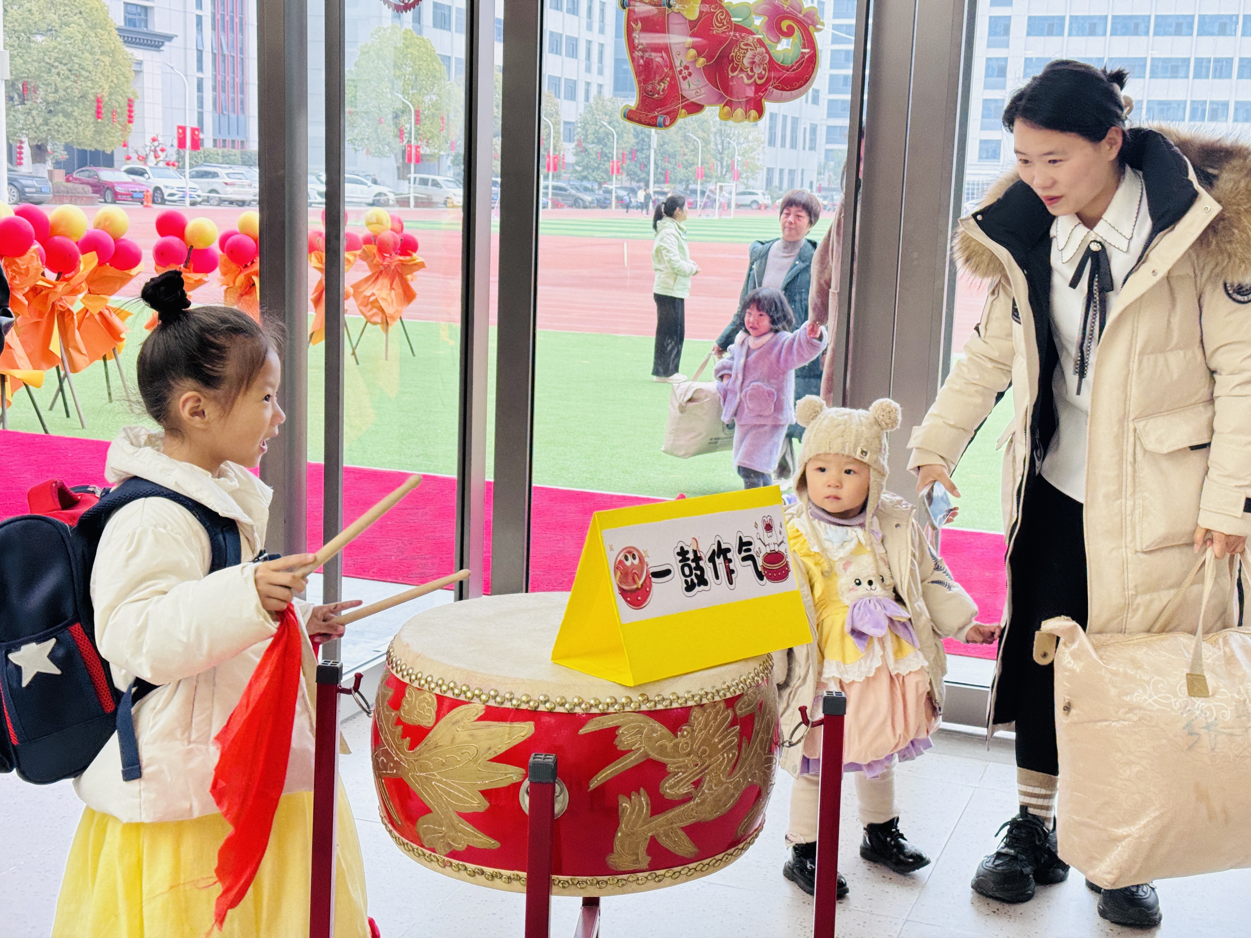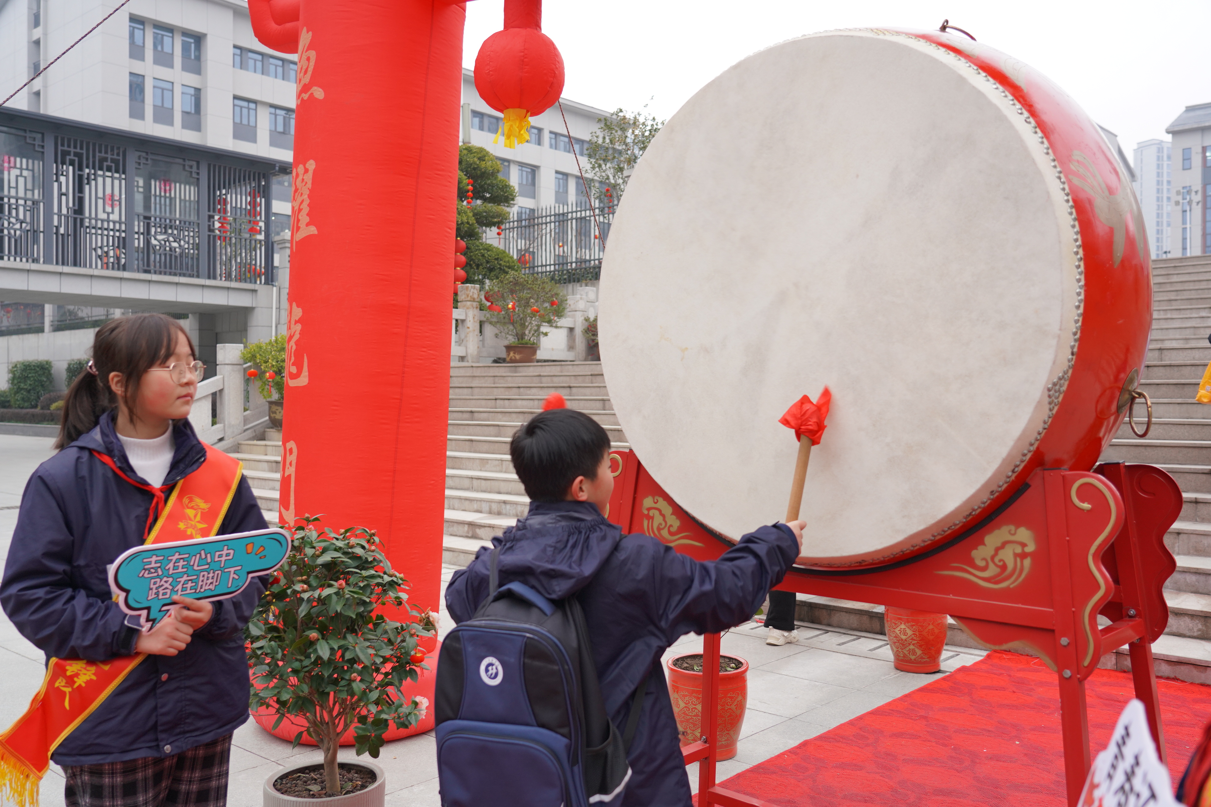 背着行囊,怀揣梦想,孩子们在家长的陪伴下,走进校园,在老师、学长学姐们的引导下走过红毯,举起鼓槌,敲出新年的第一声响,预示着新学期学业有成,一鸣惊人。