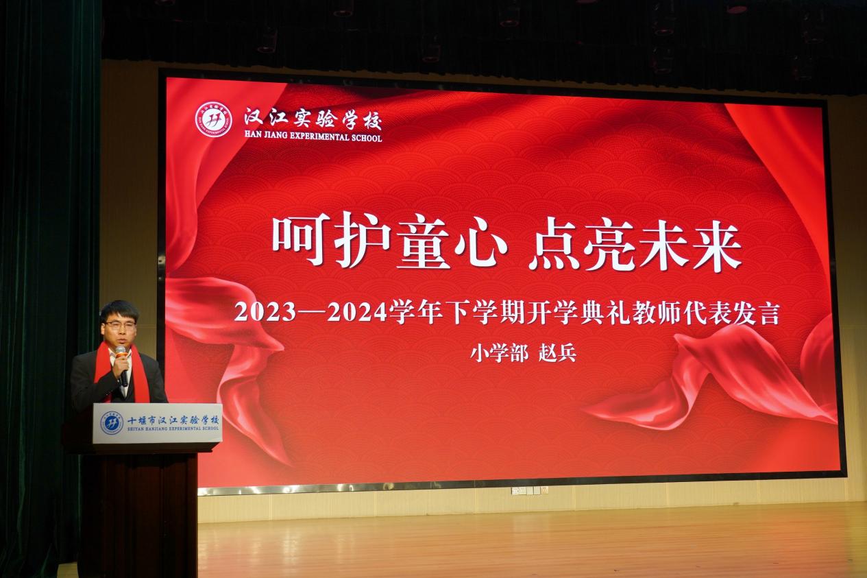 国旗飘扬,国歌嘹亮。2月27日上午,汉江实验学校在报告厅隆重举行2023-2024学年下学期开学典礼。党支部书记陈伟、校长朱仕竹等校领导出席,300余师生代表参加。本次活动以现场直播的形式,组织学生和家长在线上观看。