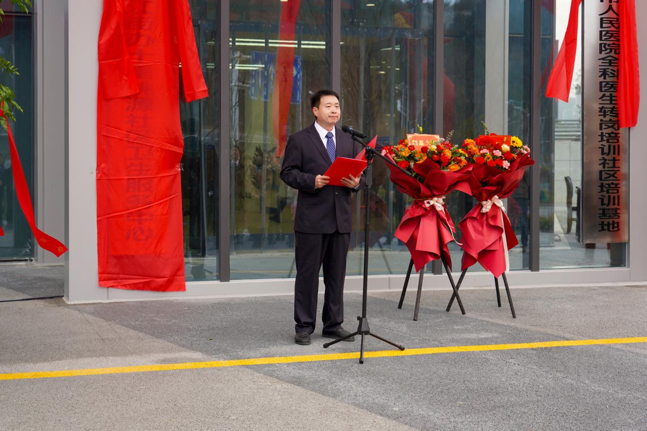 开业仪式上,张湾区汉江街办十里桃源社区卫生服务中心、十堰市人民医院紫霄社区医院正式揭牌,市人民医院党委副书记、院长孙泽群代表人民医院讲话。