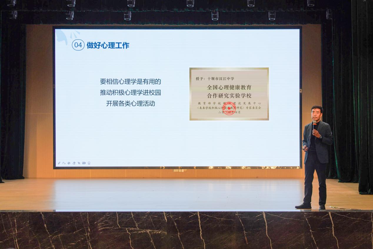 为贯彻落实市教育局文件精神,落实立德树人根本任务,关注学生心理健康,4月19日下午,全市学生心理健康和防欺凌工作专题讲座在汉江实验学校举行。市人大常委会委员、市教育局副局长王晋江,市政府教育督导室副主任督学任鹏,张湾区教育局党委书记、局长周钧等领导,市心理健康教研员及教师,各校分管负责同志参加会议,各县市区设分会场并通过十堰教育电视台视频号直播收看。