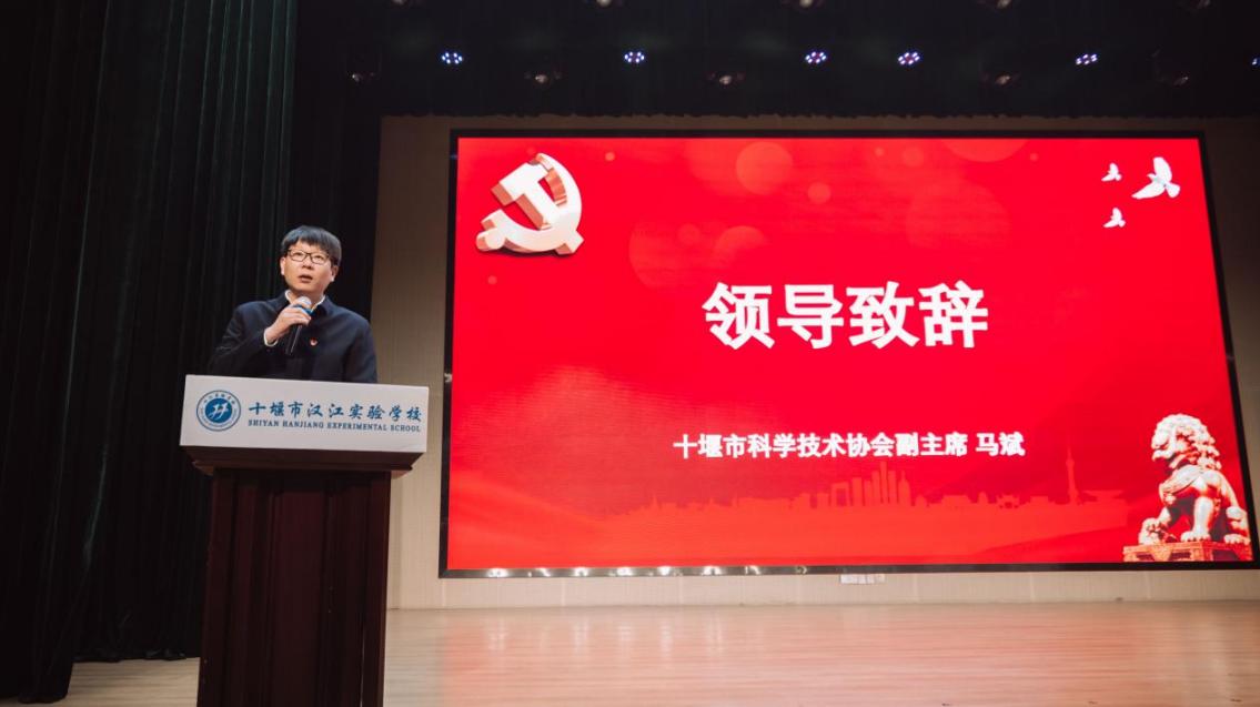 市科学技术协会副主席马斌在致辞中对我校在科技教育领域取得的成绩给予了充分的肯定。他希望,市科技教育学会与汉江实验学校能继续团结一致、紧密协作,进一步加强资源共享和优势互补,充分发挥校会合作优势,为师生提供更加广阔的科技教育平台和实践机会,让同学们在学习与实践中不断提升科学素养和创新能力。