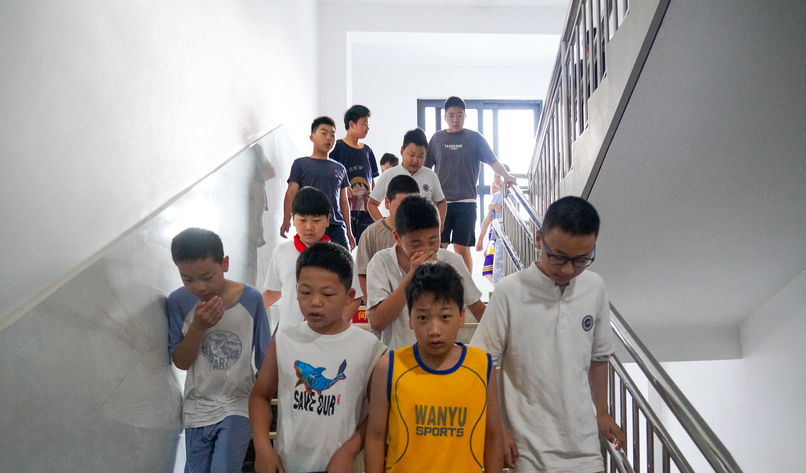 6月14日6点50分,汉江实验学校开展学生宿舍夜间紧急疏散演练活动。