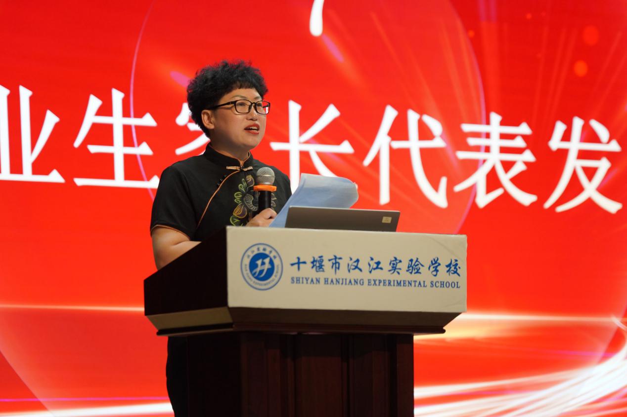 九(10)班付金灵妈妈李恩作为家长代表发言,对学校的悉心培育和老师的辛勤付出表示衷心感谢,希望全体毕业生在未来的人生道路上永葆热爱,行稳至远,肩负时代重任,挺起中国脊梁。情意浓浓,期许深深。