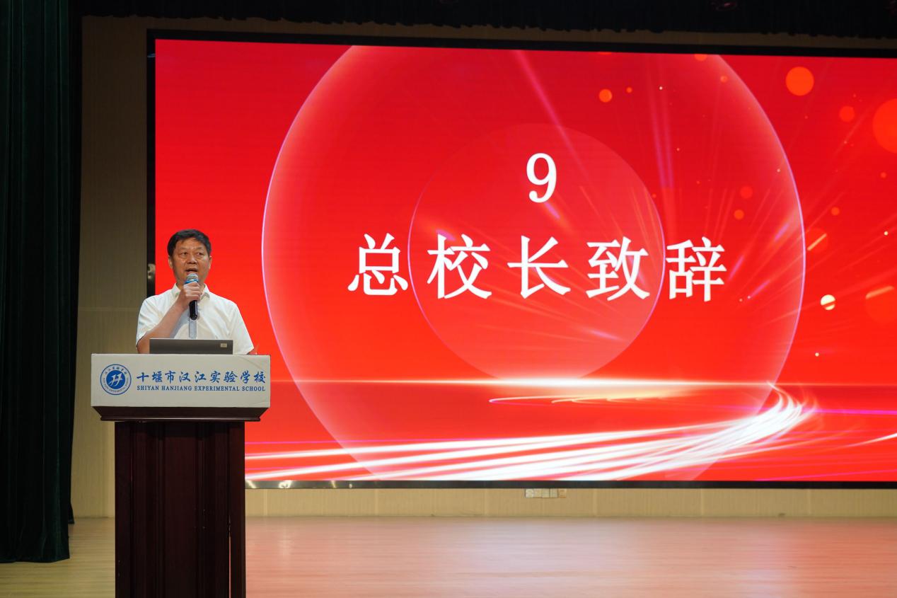 清华大学招生办公室南方招生负责人、物理系教授余京智,北京大学网络培训课程教学专家、北京大学老教授协会基础教育研究与发展中心副秘书长李亚平,北京大学老教授协会基础教育中心研学部主任吕军乔特邀参加,汉江实验学校党支部书记、董事长陈伟,总校长朱仕竹等学校领导出席活动,学生家长代表李恩女士及全体九年级师生也参加了此次典礼,共同见证汉实学子青春启航的重要时刻。