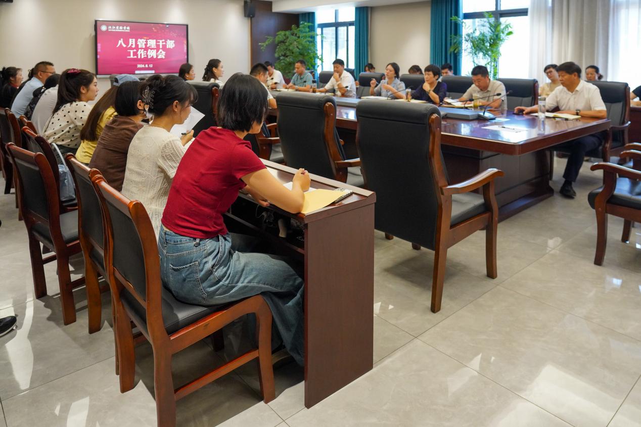 8月12日上午,我校在行政楼四楼会议室召开8月管理干部例会,就秋季学期开学相关工作做安排,会议由总校长朱仕竹主持,各部门中层副职以上干部参加。