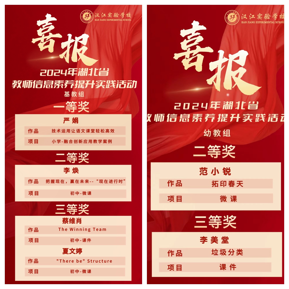除了在科技、体育方面取得的优异成绩外,学校的教师也在各类教学竞赛中脱颖而出。瞿慧兰、肖黍荞在教育部教育技术与资源发展中心(中央电化教育馆)组织的2024年度教育技术论文活动中获奖。汉江实验学校校长陈磊荣获市级优秀教师荣誉。彭钰、金海燕、周柱山、俞平、胡鑫鑫、明安鹏、黄东云、俞平8人分获区级优秀工作者、优秀教师、优秀班主任和优秀党员。汉江教育集团总经理兼总校长朱仕竹在2023年度张湾区中小学工作亮点评选中撰写的《千锤百炼建设队伍,抓纲务本提高质量》荣获一等奖。这些荣誉不仅是对老师们个人教学能力的肯定,也是对学校教师团队整体实力的认可。