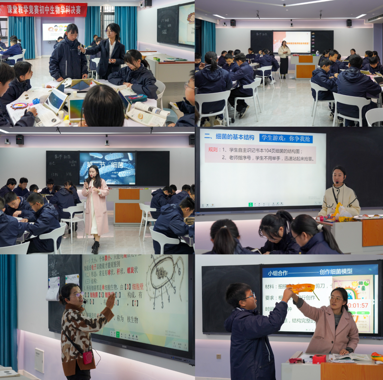 生物学科竞赛中,王汇怡老师就生物学七年级上册《细菌》一课,精心设计,利用平板和希沃高效完成课堂任务,用橡皮泥制作细菌模型,自制酸奶,将知识与生活实际相联系,培养学生科学探究能力,激发他们探索微观世界的兴趣和热情。