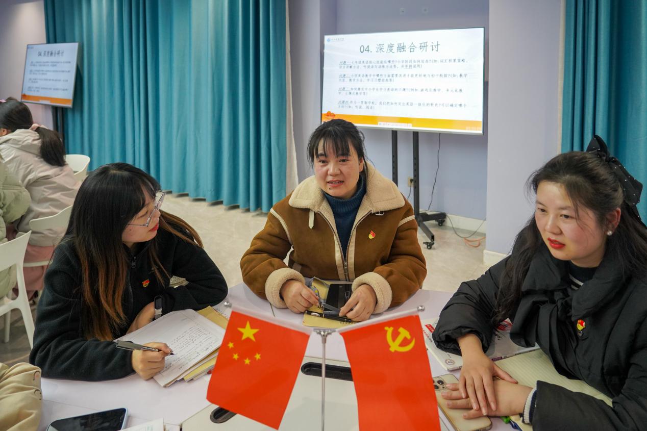 中小学英语教师交叉融合组成六个小组,围绕英语核心技能、小初衔接、兴趣培养、一体化实施等问题进行了充分的研讨交流。老师们积极发言、各抒己见、见解独到,在互动过程中不断碰撞出思维的火花,学其所长,研有所得,营造了浓厚的教研氛围。