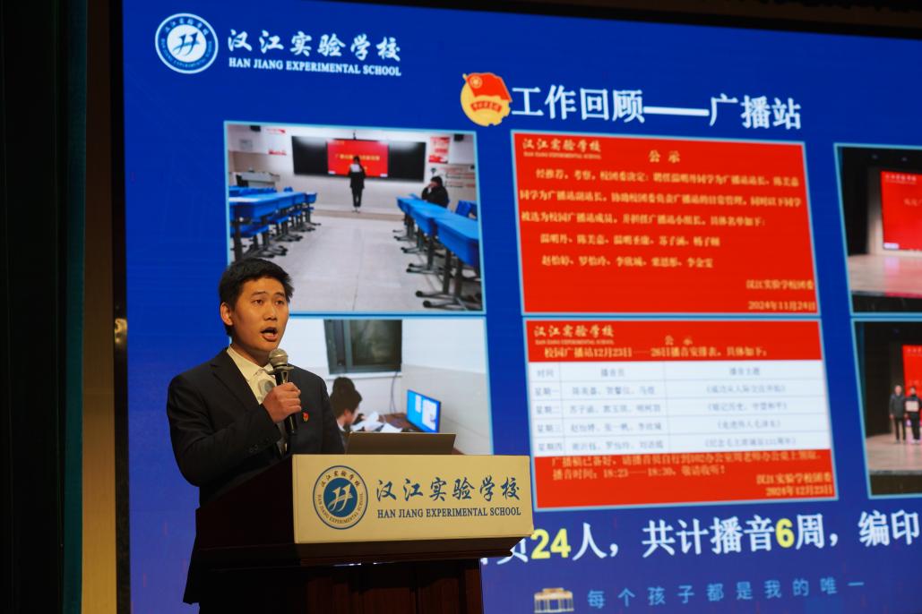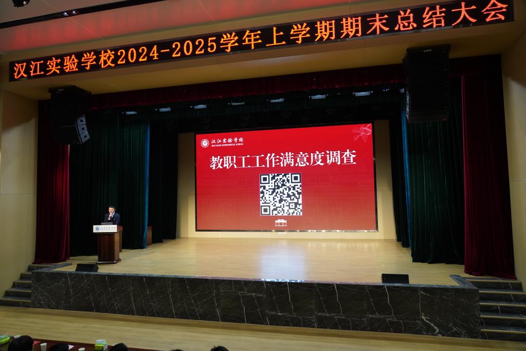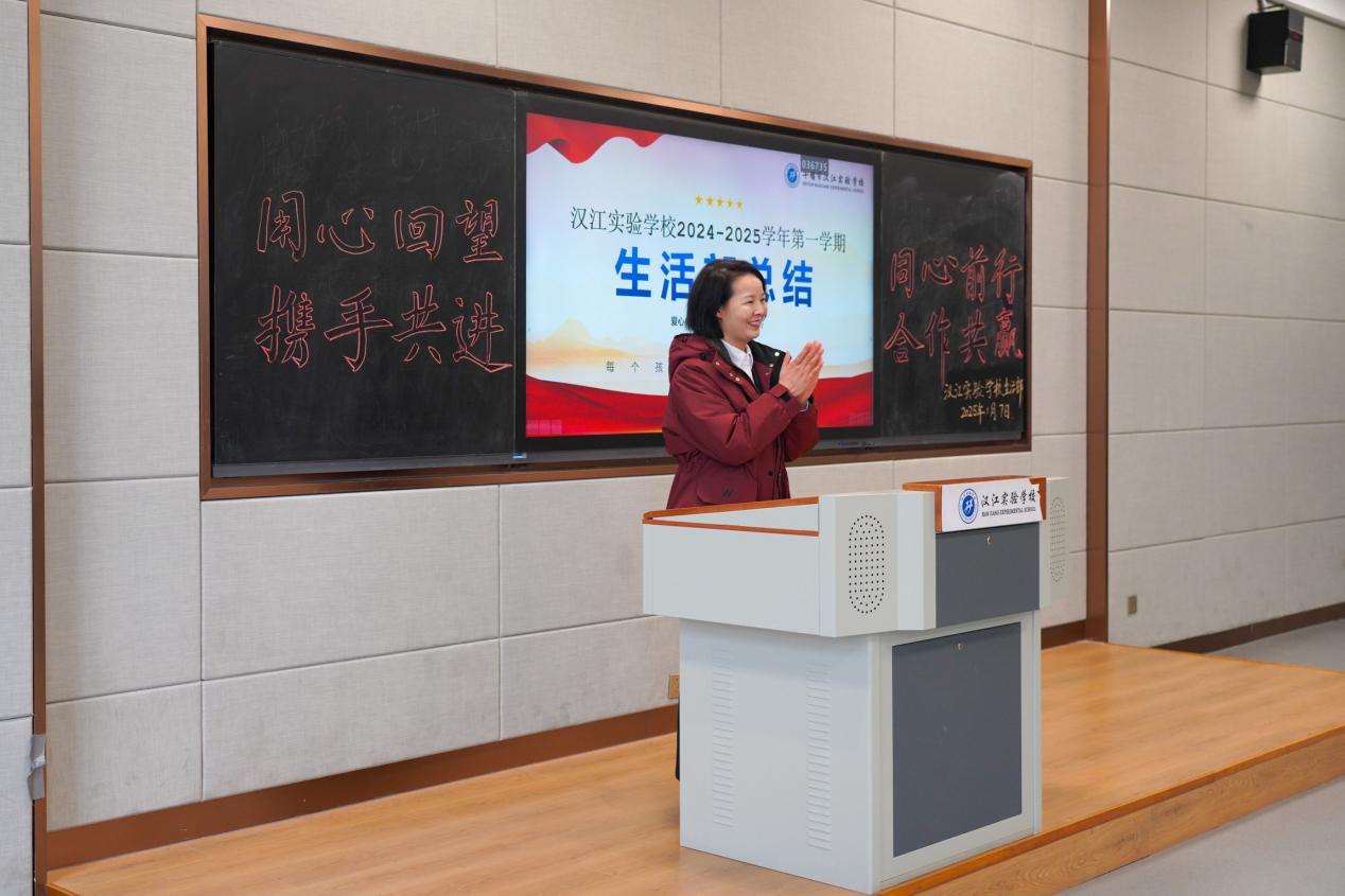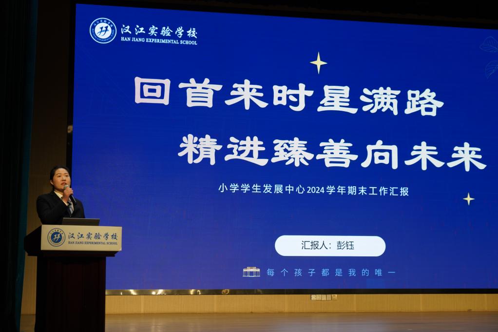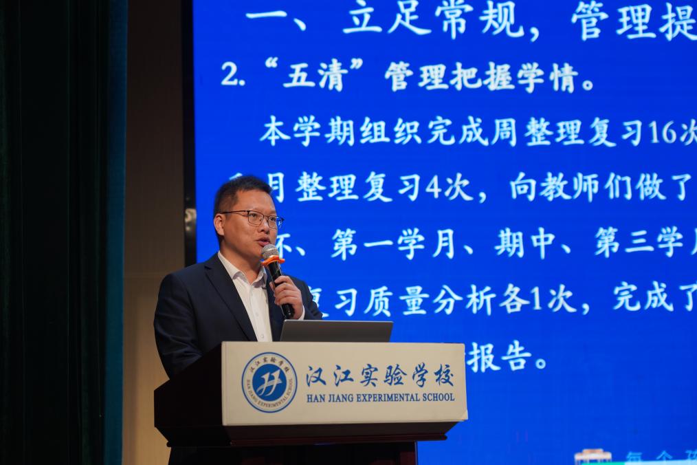 汉江实验学校校长陈磊对本学期学校党建、德育、教学、安全、服务,中小学亮点工作等各个方面进行了全面回顾与总结,充分肯定了全体教职工为学校的发展付出的努力,取得的成绩,硕果累累的教育画卷,展现出汉江教育人开拓创新、砥砺奋进的非凡身姿。陈校长在总结会中还部署了消防安全工作,并鼓励全体汉实人继续坚守为党育人、为国育才的初心,培养学生“ 崇文 尚武——做具有世界交往能力的中国人”,办好让党放心、让人民满意的教育,奋力开创汉江教育发展新局面!