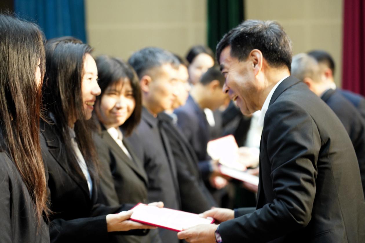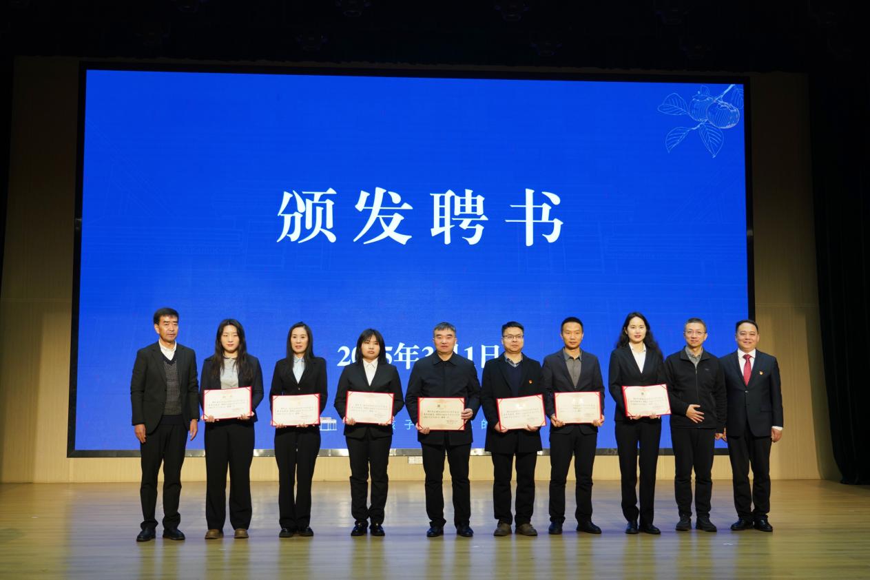 汉江中学办学顾问蒋承教授、汉江教育党总支书记陈伟、汉江中学校长马新民为委员们颁发聘书。