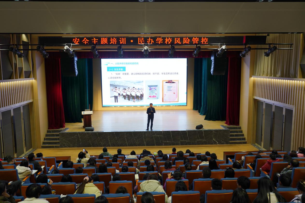 2月21日,汉江实验学校组织全体教师开展了安全专题培 训。此次培训由汉江中学校长马新民主讲,重点围绕学校如何风险管控的内容展开。