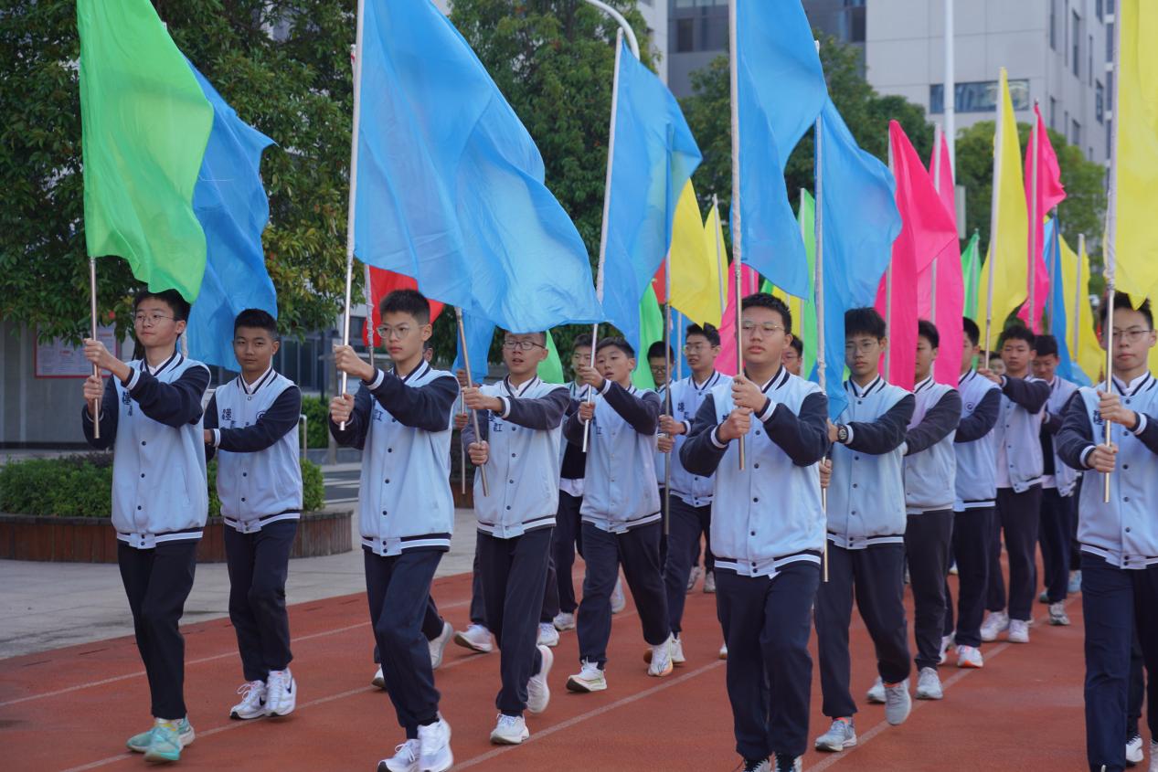 璀璨启幕,扬帆梦想。由国旗队、校旗校徽队、会徽、鼓号队、鲜花队、彩旗队组成的综合方阵率先登场,他们身穿整齐的服装,迈着矫健的步伐,高喊口号,以饱满的热情和昂扬的斗志传递出强大的力量。