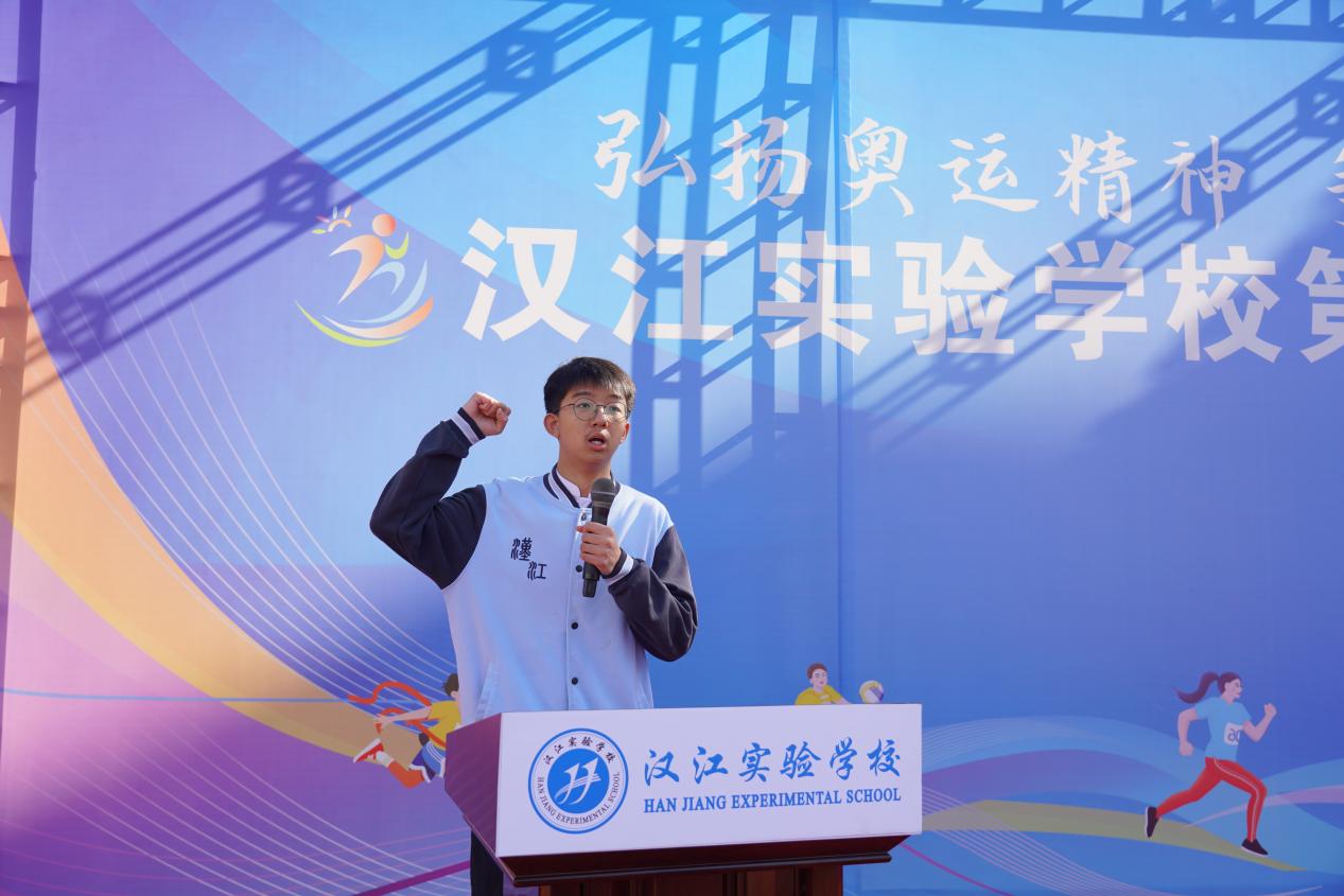 以激情为笔,以汗水为墨。让我们携手共赴这场精彩的体育盛宴,将“更高、更快、更强、更团结”的奥林匹克精神的种子播洒在每一位汉实学子心田。在接来下为期三天的赛程中,相信汉实学子将绽放更耀眼的光芒,创造更辉煌的荣光!预祝本届运动会圆满成功!