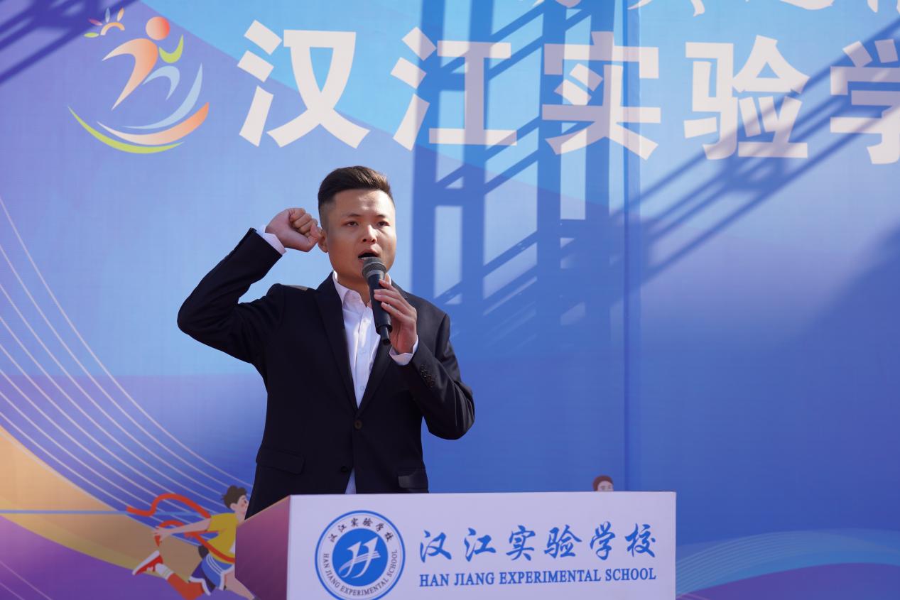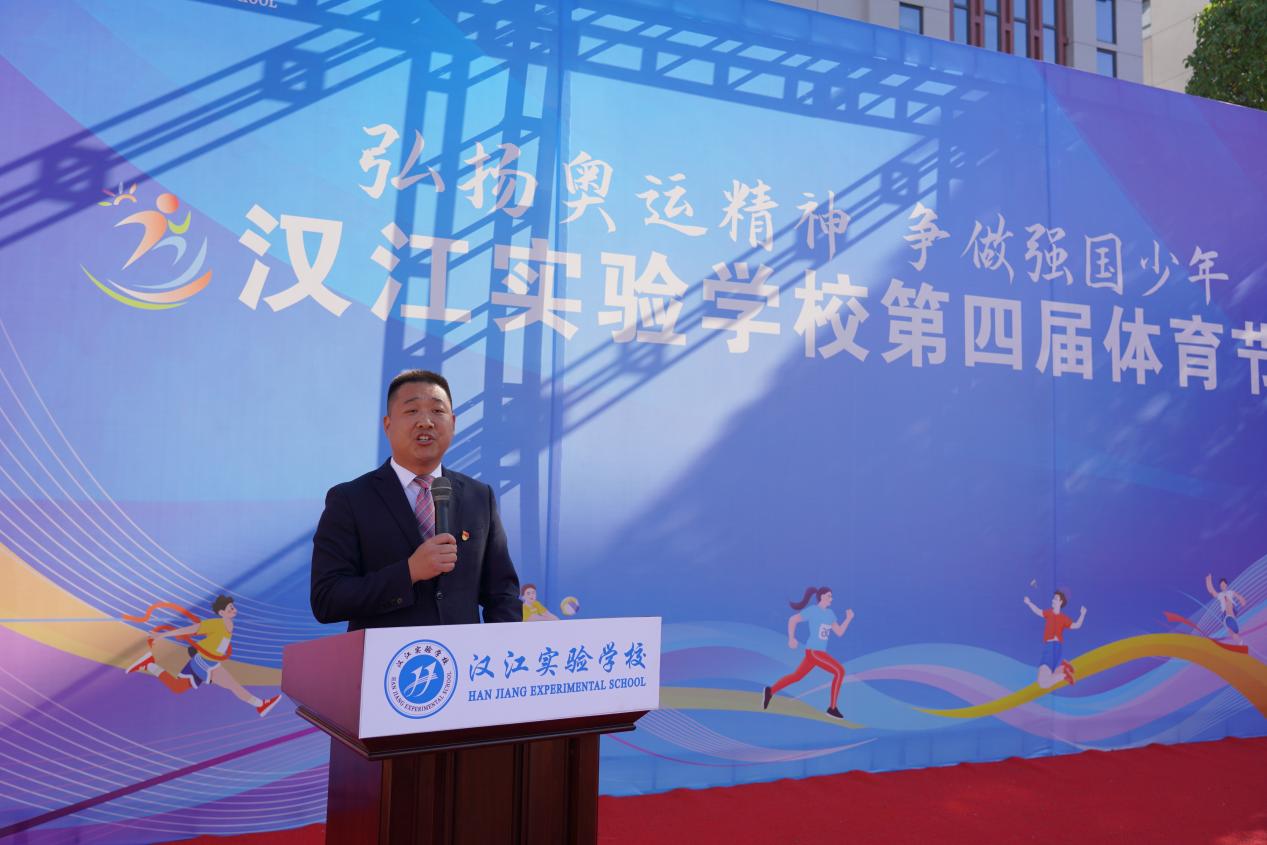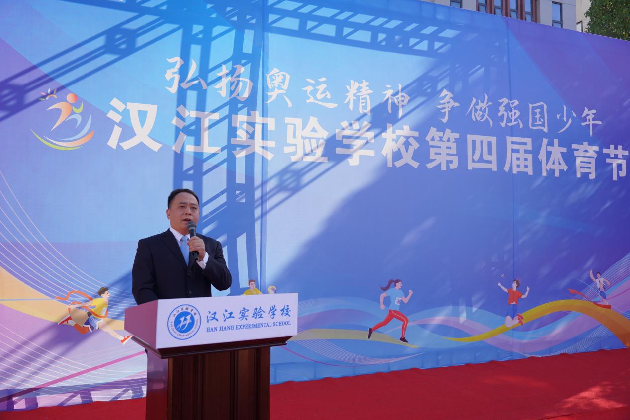 汉江教育集团董事长兼汉江实验学校党支部书记陈伟郑重宣布汉江实验学校第四届体育节开幕!”