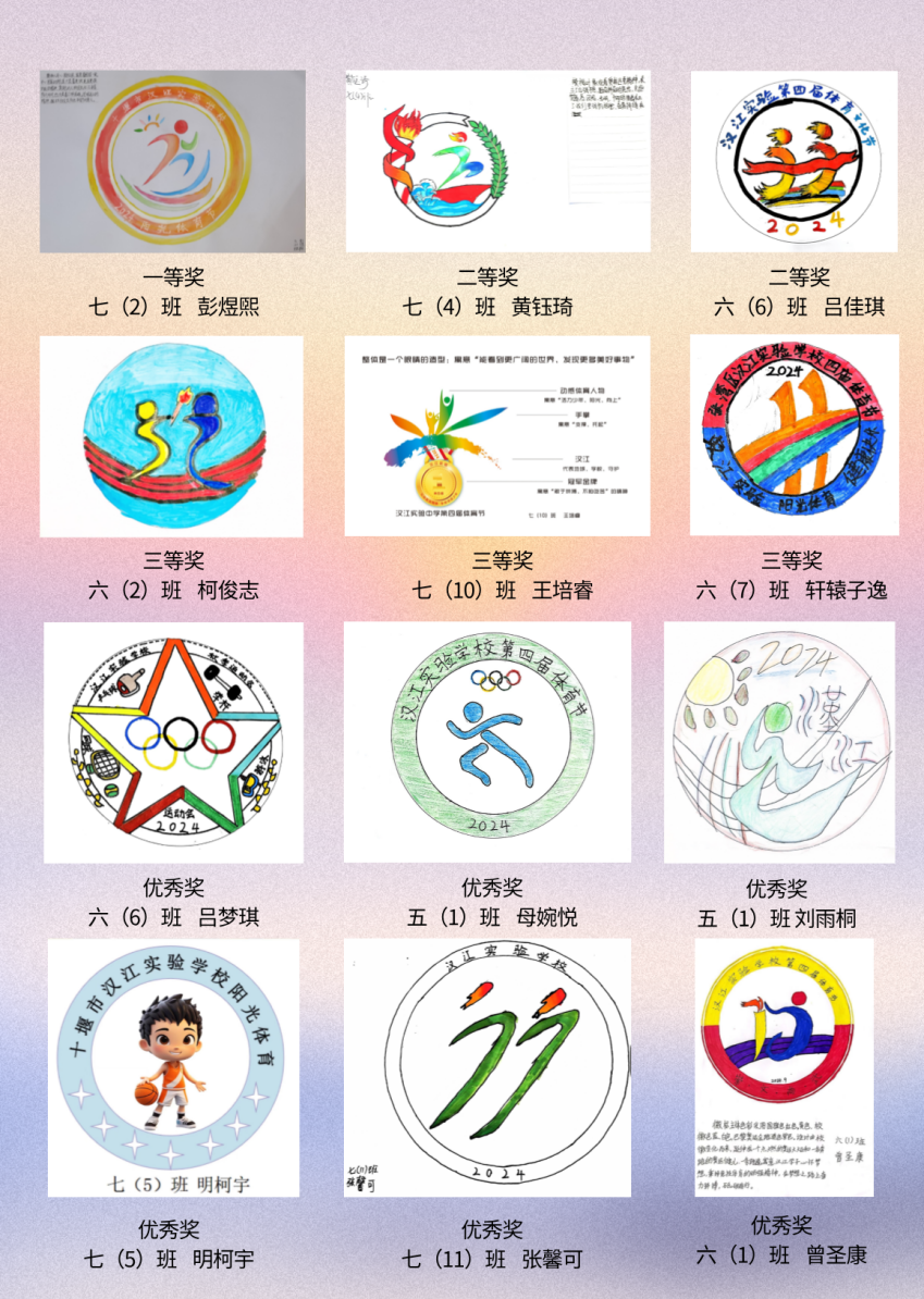 汉江实验学校校长陈磊宣读表彰文件。汉江教育投资有限公司总经理兼总校长朱仕竹,汉江实验学校校长陈磊,执行校长王国聪为会徽设计获奖的学生颁奖。小小设计师们匠心独具,构思巧妙,将校园文化内涵和运动精神融于一体,彰显了智慧和艺术魅力。