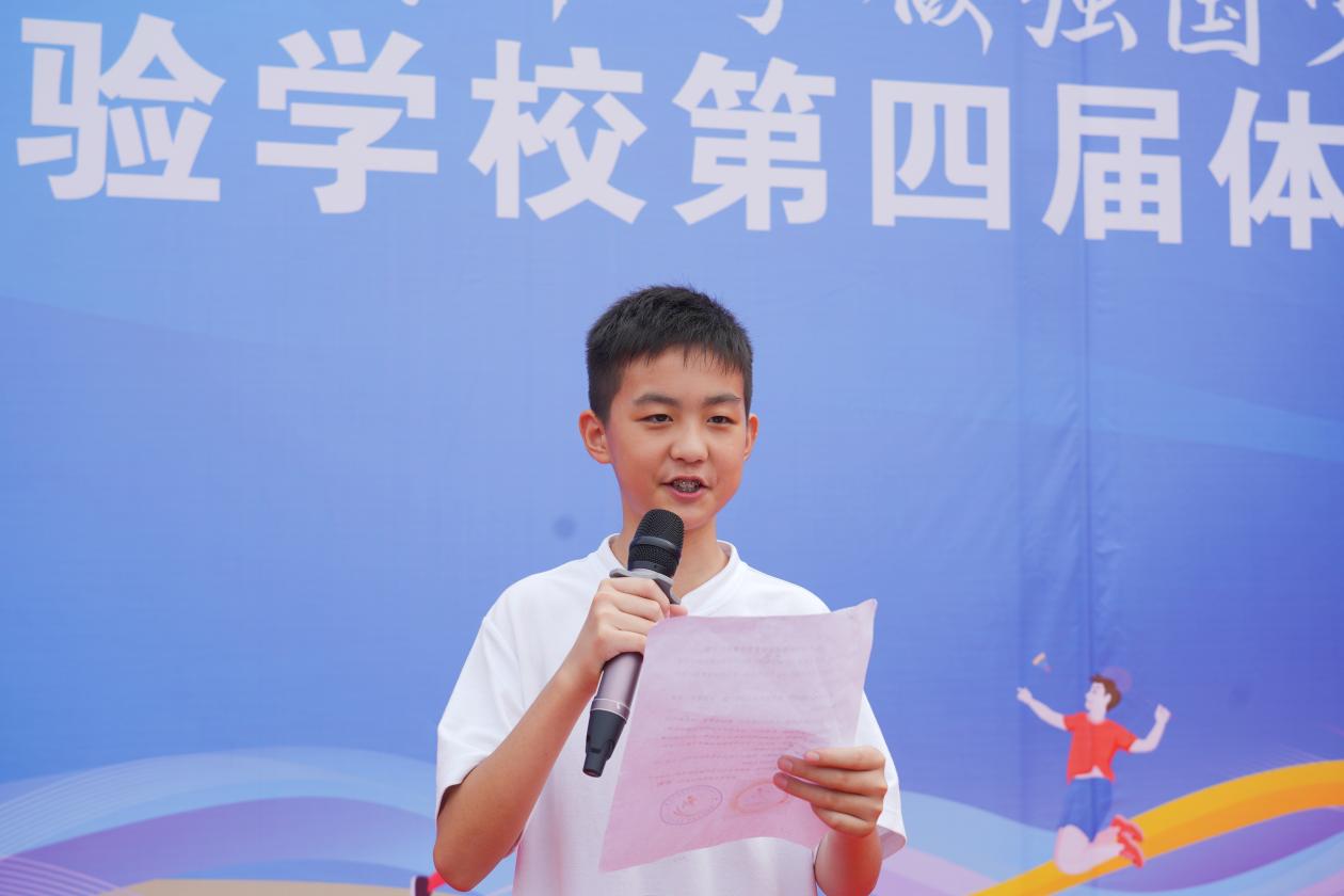 七年级郝文博老师代表裁判员介绍体育节项目,并承诺将秉承公正公平的原则。