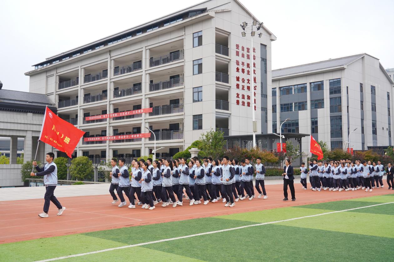 各班方阵进行风采展演。四年级折返跑、七年级军体拳、八九年级跑操,他们青春朝气,昂首阔步,步伐铿锵,活力四射,尽展风采。