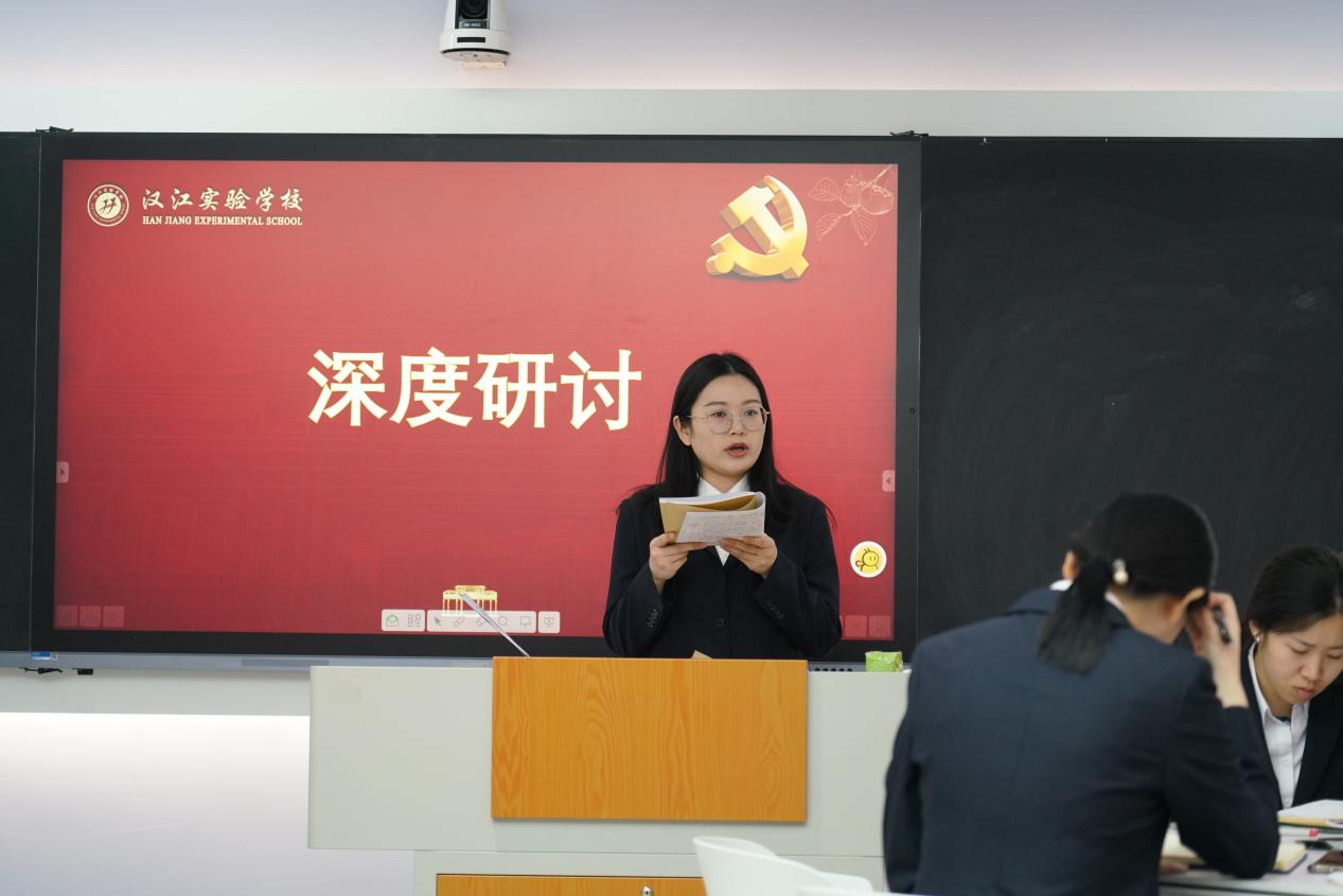 汉江实验学校党支部组织委员、副校长杨志从国家要求、社会需要、教师教学、学生成长、人的发展五个层面,对“道法老师”作了广义的解读,他希望道法老师坚持“党对教育的全面领导,坚持立德树人”,做一名新时代的思政引路人。