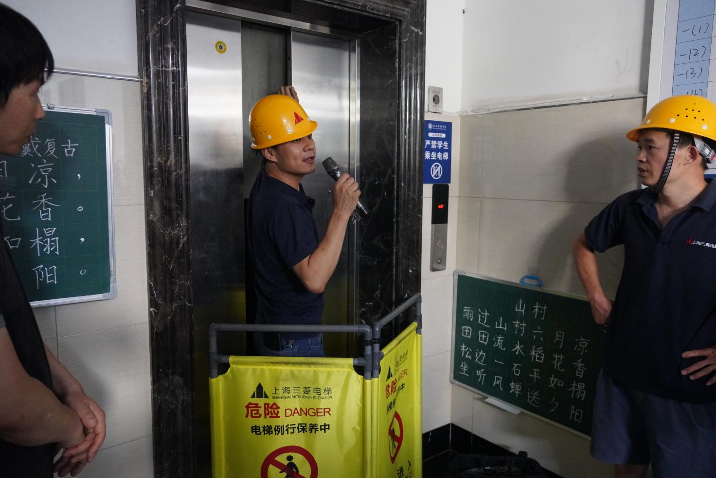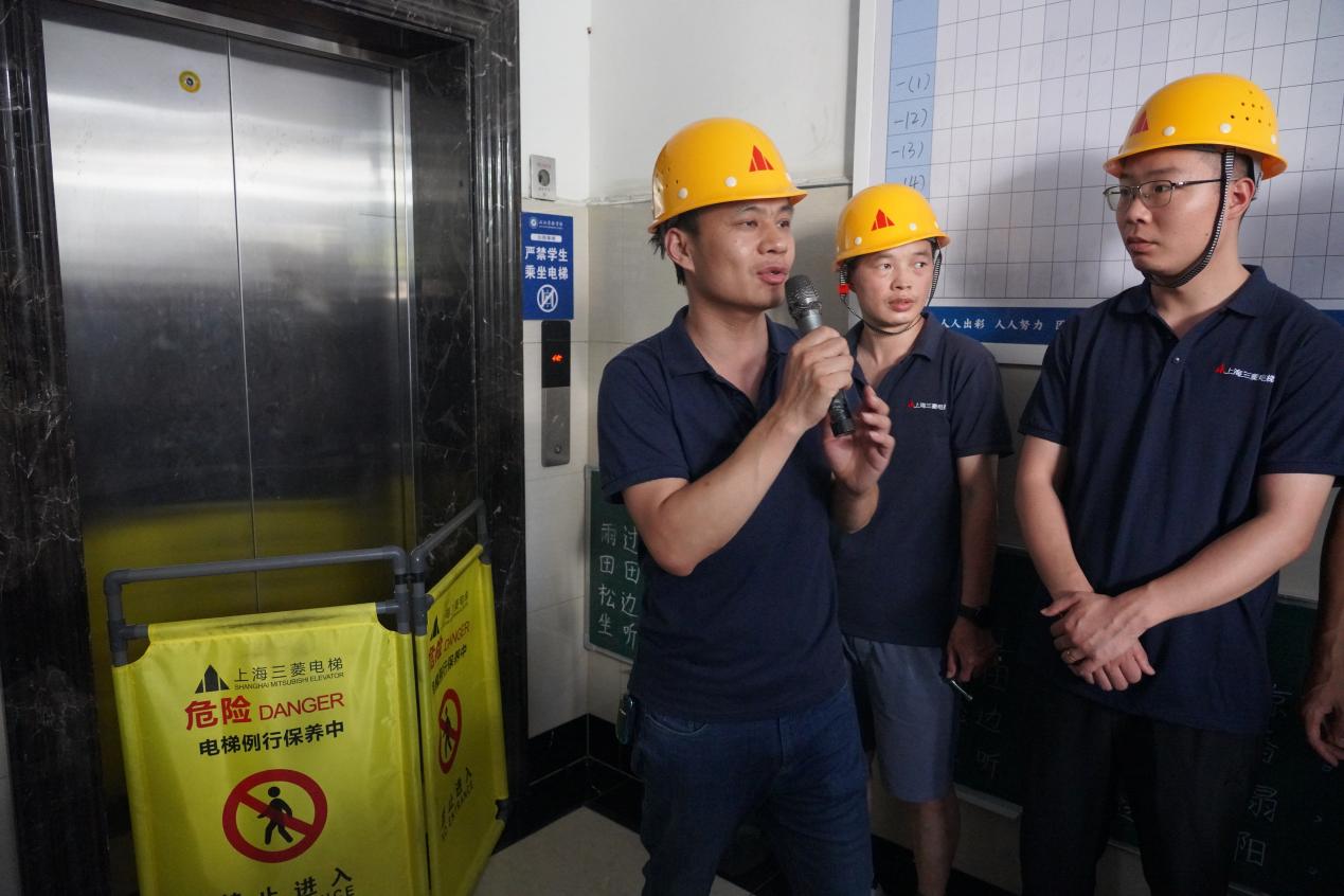 6月12日,学校开展电梯事故应急救援演练活动。演练电梯发生困人事故,被困人员使用轿厢内的紧急呼叫装置、号码向外求救,值班人员接到求救电话后,立即启动紧急救援程序,通知电梯维保单位人员安全地救出被困人员,及时排除电梯故障,使电梯恢复正常运行的全过程。