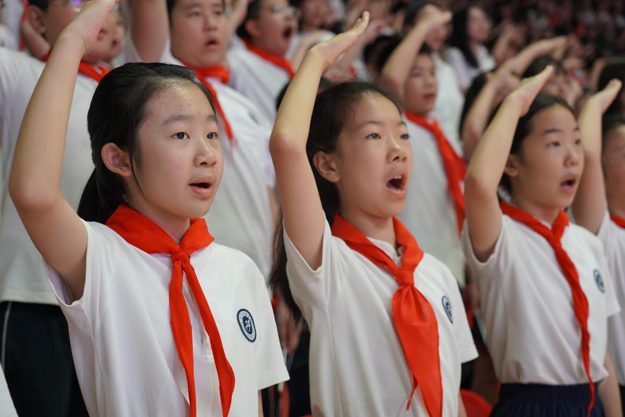 纪念大会在庄严的升旗仪式中拉开序幕。全体师生肃立,面向国旗行注目礼,伴随着国歌旋律,共同唱响国歌,歌声响彻全场,满满的爱国之情在每个人心中澎湃。