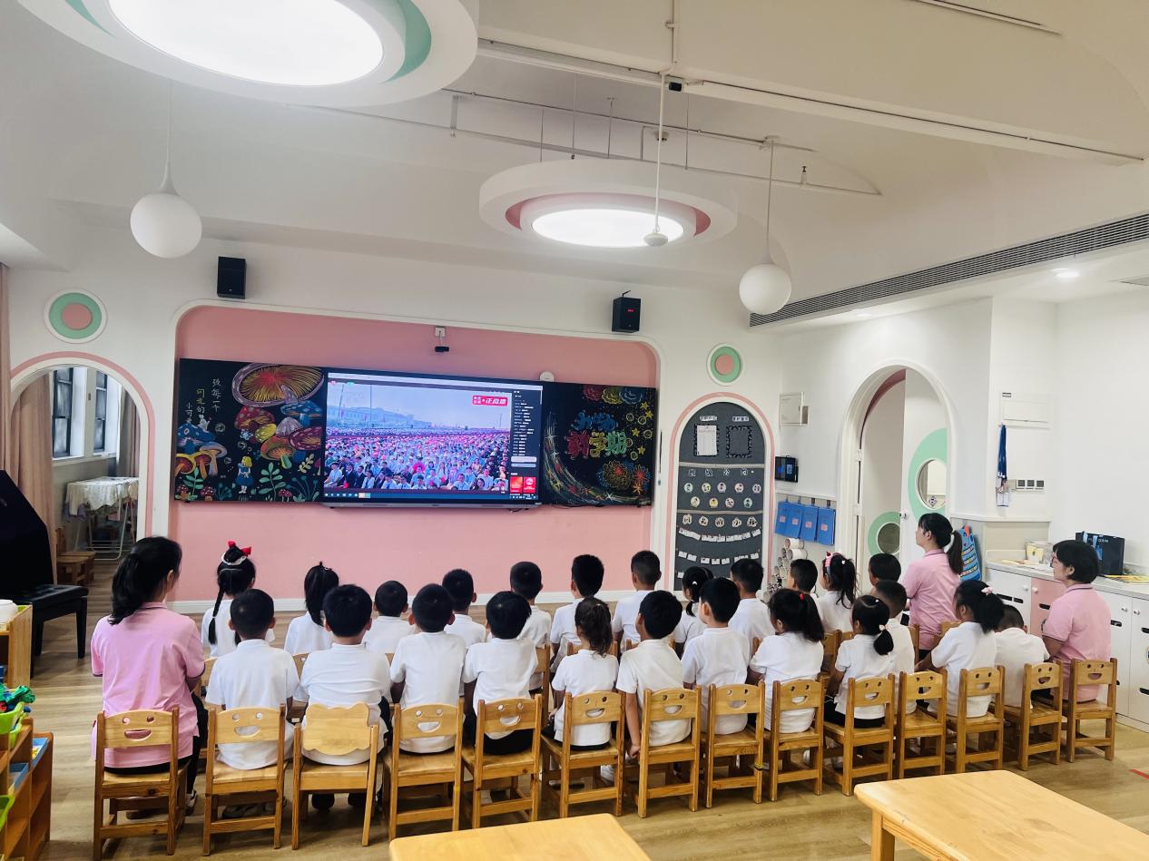 屏幕中,受阅部队铿锵有力的步伐和现代化武器装备的壮观场面,令师生们心潮澎湃。屏幕外,掌声一次次响起,师生们为人民军队的强大喝彩,为祖国的繁荣昌盛倍感自豪。