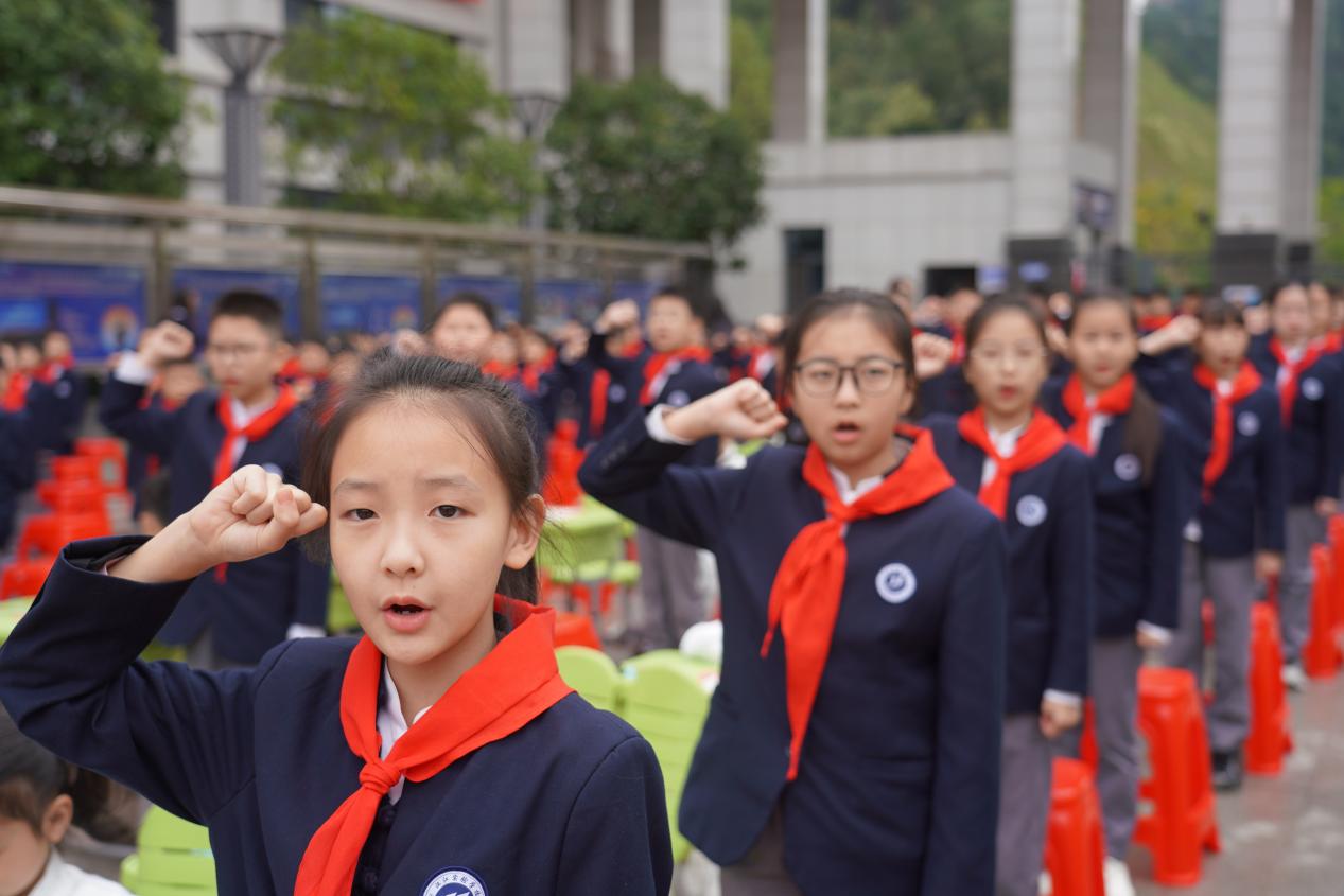 七十名汉实学子光荣地加入了中国少年先锋队。在鲜艳的队旗下,全体新队员庄严宣誓,“强国少年,勇担使命”的誓言响彻校园。