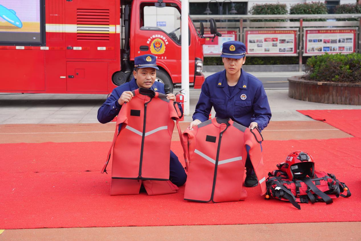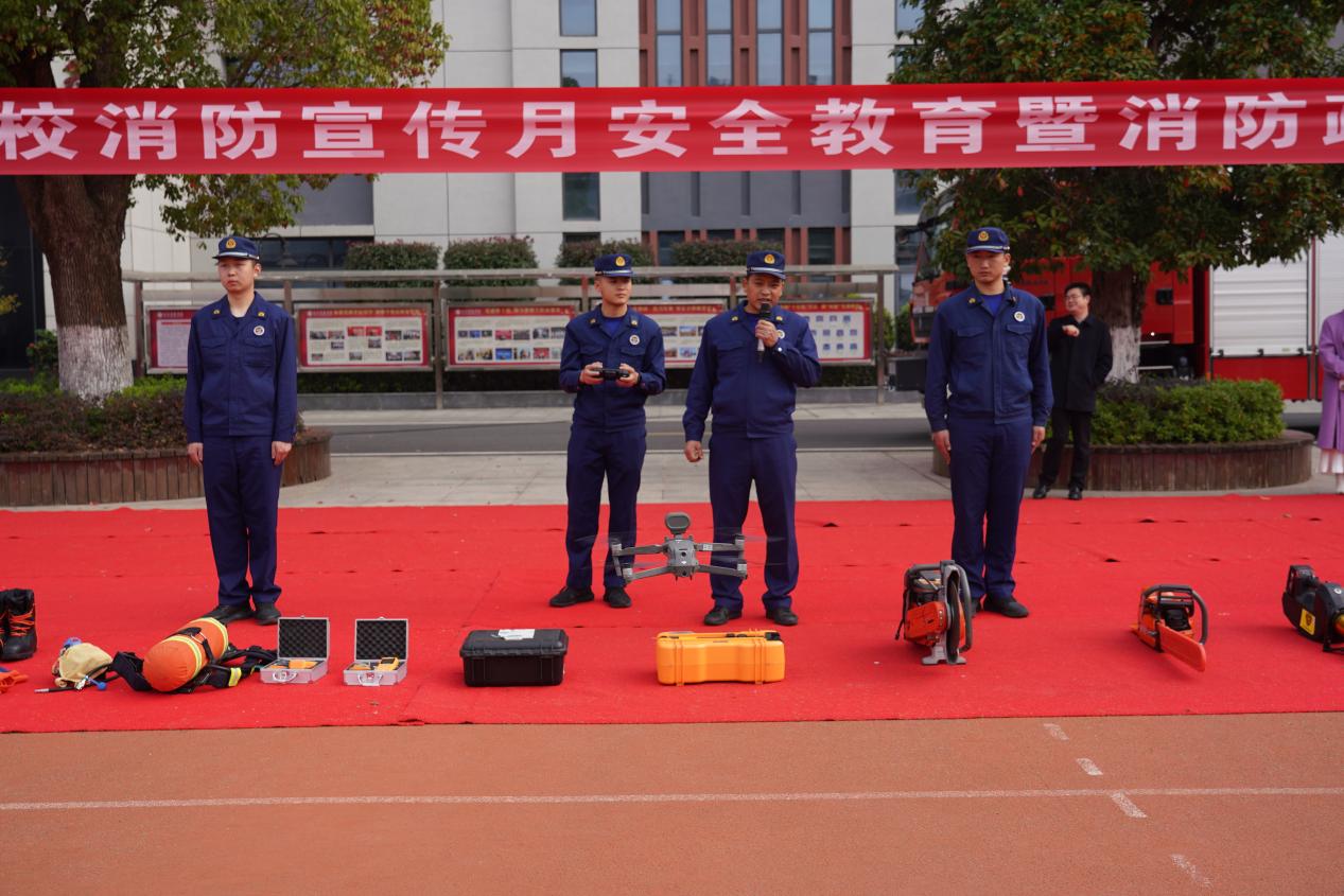 消防员现场普及消防知识,并向师生们集中展示无人机及智能化防护服等装备。师生们近距离观摩体验消防器材操作,消防员耐心细致地解答,现场互动热烈,极大地增强了活动的趣味性与参与感,使抽象的消防知识变得生动具体、易于理解。