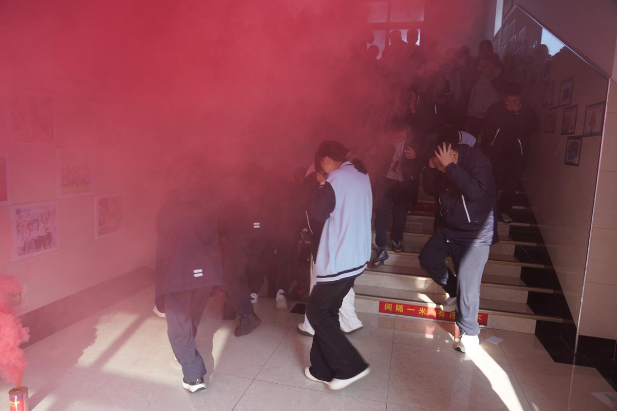 上午9时50分,随着模拟烟雾的升起和急促的警报声响起,消防疏散演练正式拉开帷幕。全体师生迅速进入紧急状态,严格按照学校预先制定的消防疏散预案,沿着指定逃生路线,低姿、弯腰、捂口鼻,快速、有序地向学校操场安全区域撤离。整个过程紧张而不慌乱,密集而不拥挤。
